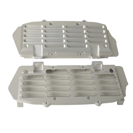 KTM Radiator Guard Grill Cover je vrhunski, CNC-obdelan aluminijast ščit, zasnovan za modele KTM XC/SX/SXF/EXC in Husqvarna 2024. Izdelan je iz aluminija letalske kakovosti in končan v anodiziranih barvnih možnostih, ta ščit nudi močno sprednjo in stransko zaščito, ne da bi ogrozil zmogljivost hlajenja. Robustni vzorec, navdihnjen s tiskano vezjem, dodaja drzen, samozavesten videz, ki vam pomaga izstopati na poti, hkrati pa ščiti vaš radiator pred kamni, vejami in ostanki na poti.