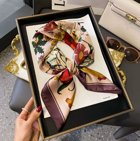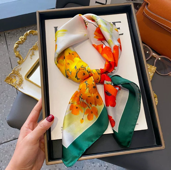 Nov New Simple 70cm Silk Square Scarf od Stmanya prinaša pridih elegance in vsestranskosti za vsako priložnost. Ta osupljiv šal s satenskim potiskom je popoln za ženske, ki cenijo stil in funkcionalnost, kar ga dela nujen dodatek za pomlad in poletje.