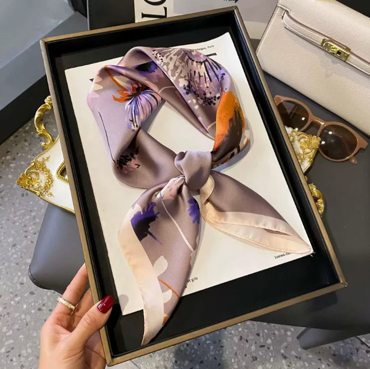 Nov preprost 70cm svilen kvadratni šal – Elegantni satenski bandana vzorec