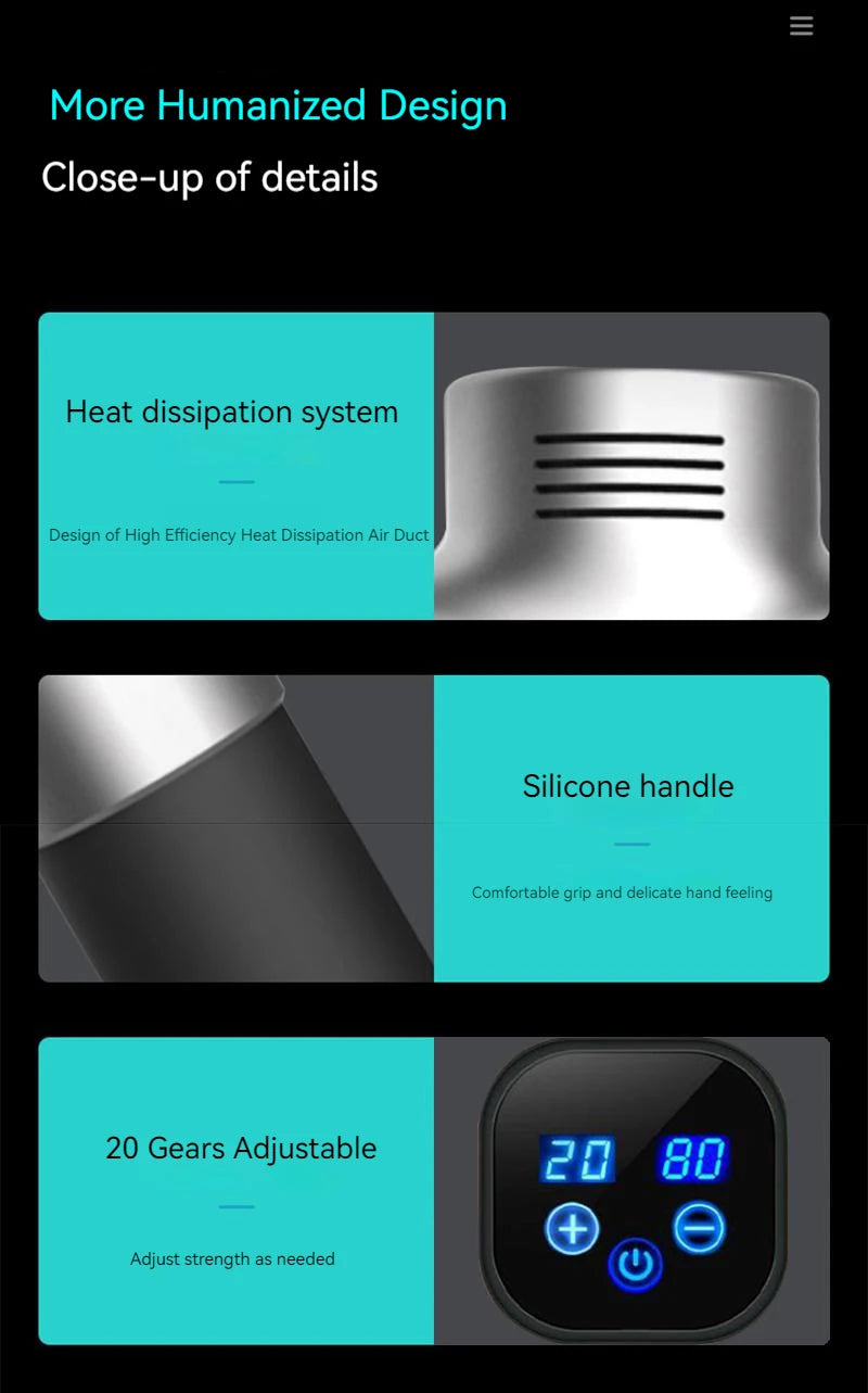 - Primerno za masažo telesa in razgradnjo mlečne kisline za pospešitev okrevanja
