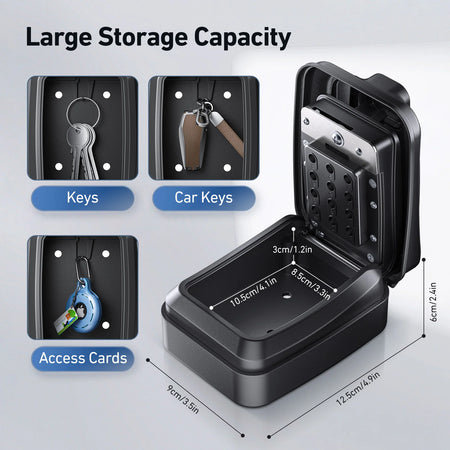 Prenehajte skrivati ključe na tveganih mestih. Naša trdna ključna škatla za montažo na steno je idealna za domove, pisarne, garaže, skladišča ali katerikoli prostor, kjer je potreben zaupanja vreden dostop za družino, čistilce, prenovitelje, najemnike ali oskrbnike.