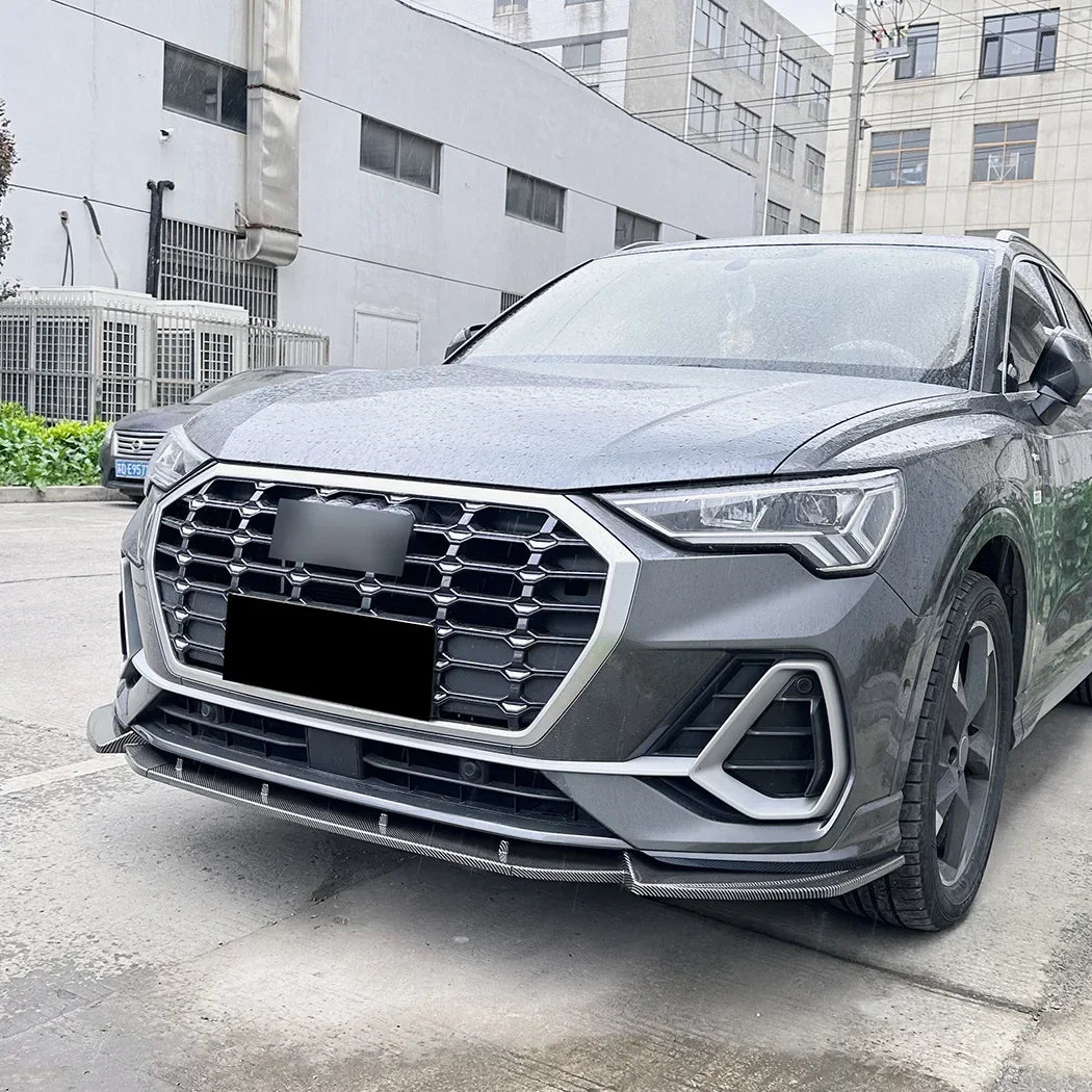 Q3 Car Front Bumper Lip Canard Splitter Diffuser Body Kit Spoiler Tuning For Audi F3 Sline Sedan 2019 2020 2021 2022 2023 2024 je trpežna nadgradnja po meri, zasnovana za izboljšanje videza vašega Audi Q3 F3 SLine, hkrati pa dodaja funkcionalne prednosti. Izdelan iz lahkega ABS, ta sprednji komplet vključuje lip, canarde, splitter in komponente difuzorja, zasnovane za prileganje modelom Audi Q3 F3 SLine Sedan od leta 2019 do 2024. Visokokakovostna konstrukcija iz ABS zagotavlja trdno odpornost na udarce in čist, agresiven videz, ne da bi dodala odvečno težo. Zasnovan za enostavno prileganje obstoječim montažnim točkam, pomaga izboljšati aerodinamiko, zmanjšati dvig in povečati stabilnost vašega vozila na cesti.