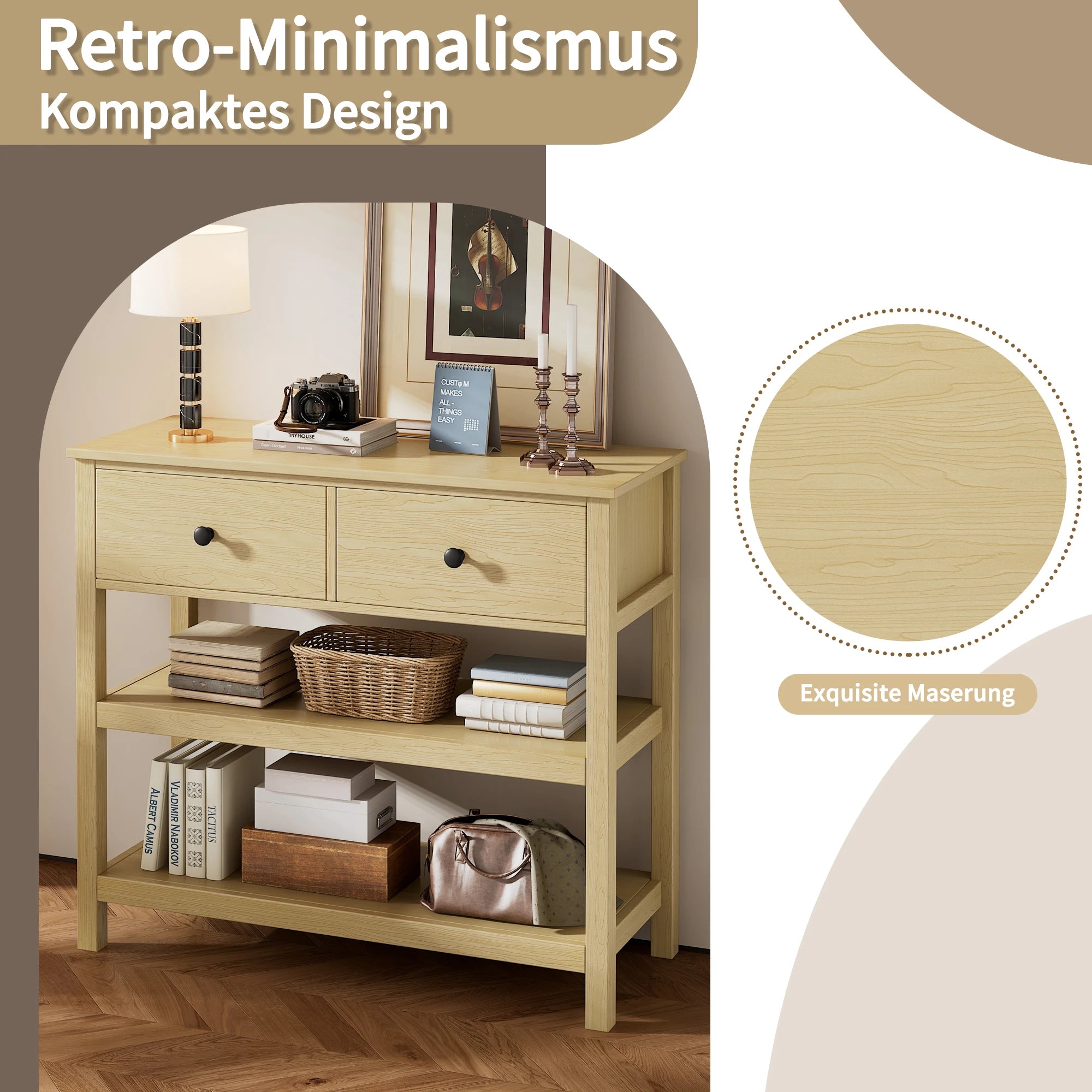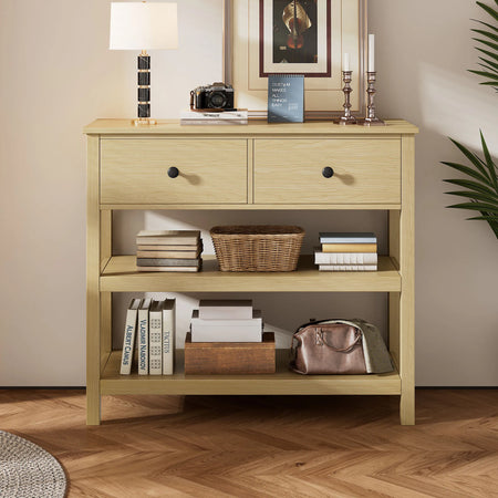 Spoznajte Retro Ozko Leseno Konsole Mizo Z Predali In Policami—kompaktna, stilna stvar, ki združuje retro čar s sodobnim dizajnom. Z enotnim videzom lesa, miza in okvir delita isto toplo barvo za usklajen zaključek, ki se prilega vhodom, dnevnim sobam ali ob kavču. Zgrajena za trajnost, ta konzolna miza uporablja visokokakovosten PB in MDF ter lahko podpira do 10 kilogramov za vsakodnevno uporabo, fotografije, rastline ali dekor. Z dvema predaloma in dvema odprtima policama ponuja praktično shranjevanje za ključe, daljinske upravljalnike in majhne predmete, medtem ko ozek profil ohranja prostore brez neredov. Enostavna za sestavljanje z vsemi potrebnimi deli in jasnimi navodili v škatli, je ta samostojni kos pripravljen, da v nekaj minutah izboljša vaš prostor.