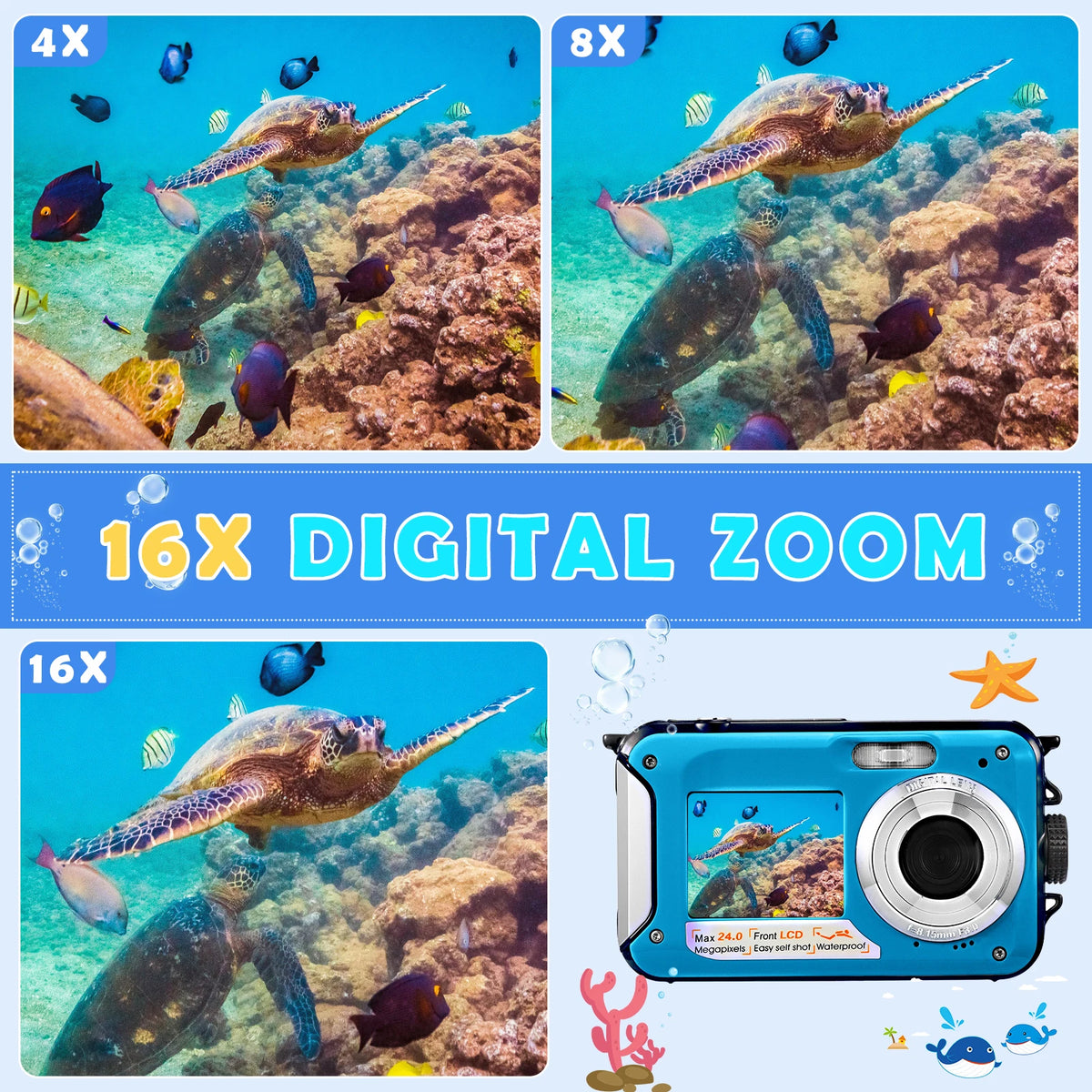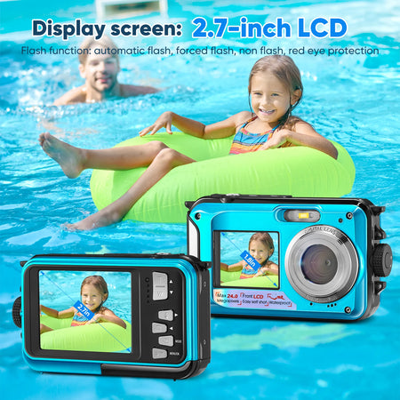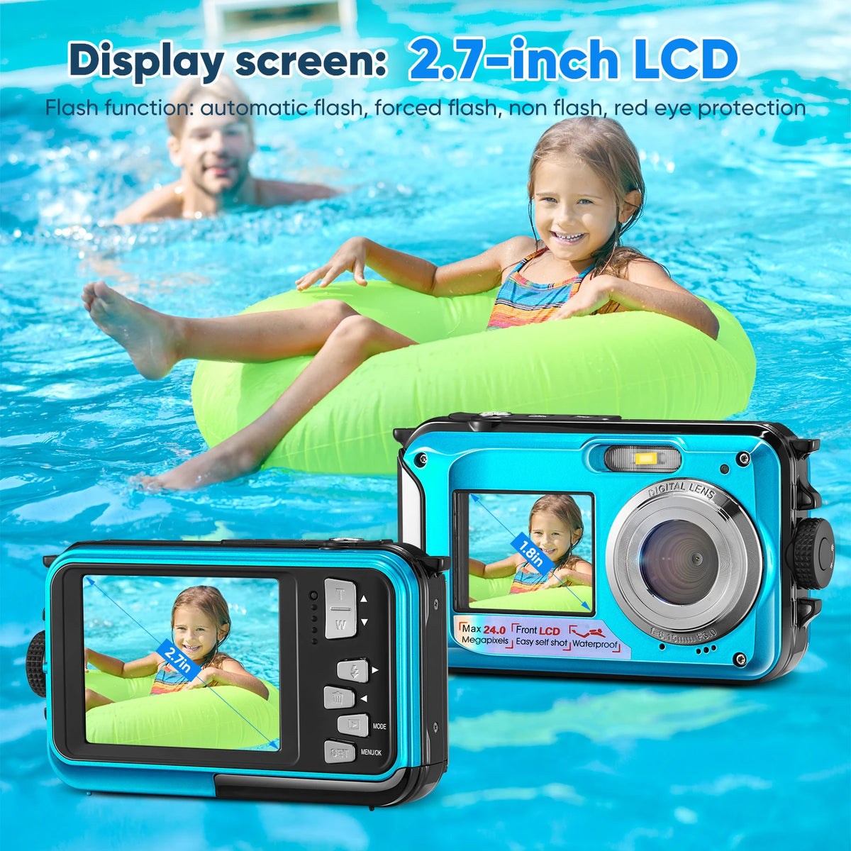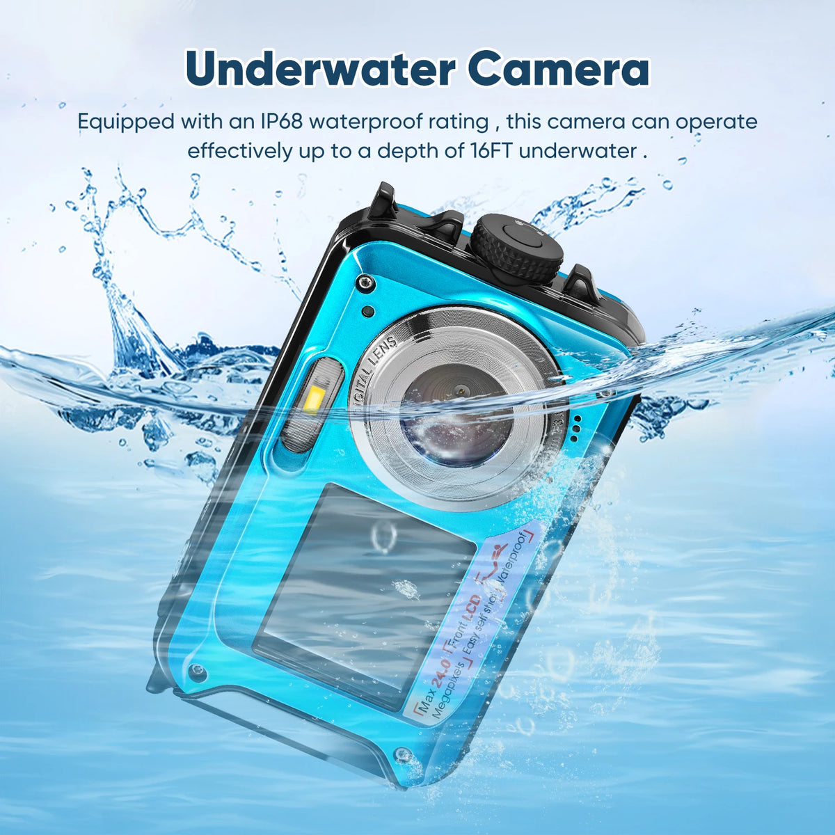 Podvodna samodejna kamera 2.7K 24MP Dual Screen Blue