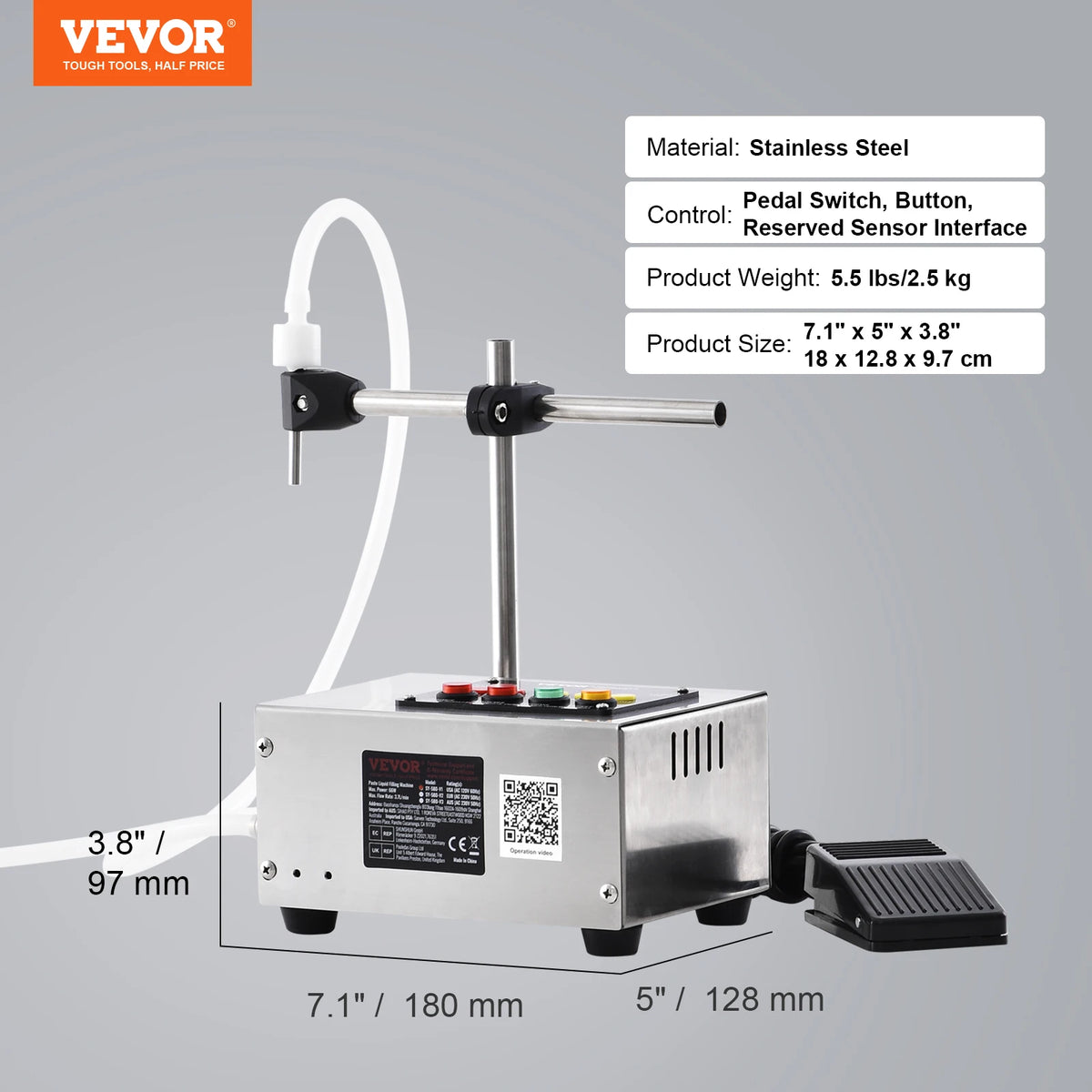 SY-580 – Avtomatski polnilec tekočin z digitalnim nadzorom je kompakten polnilec steklenic iz nerjavečega jekla, zasnovan za hitro in natančno polnjenje tekočin z digitalnim nadzorom in vsestranskimi možnostmi aktivacije. Idealno za proizvodnjo manjših serij, laboratorije in lahko industrijsko uporabo, kjer sta prostor in natančnost pomembna.