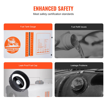 Zasnovan za tiho udobje, ta dizelski grelnik ima vrhunski izpušni sistem in črpalko za gorivo, da zmanjša hrup (≤75 dB), tako da se lahko spočijete ali vozite brez motenj. Ohišje iz litine aluminija in keramični vžigalnik omogočata hitro ogrevanje, medtem ko premišljene nadgradnje—indikator ravni goriva in nepropustna kapica za gorivo—povečujejo varnost za daljšo uporabo. Velik ročaj za prenašanje olajša transport v vašo garažo, avtodom ali na zunanje lokacije.