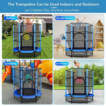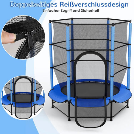 Otroški 140cm trampolin z varnostno mrežo in zadrgo za notranjo uporabo