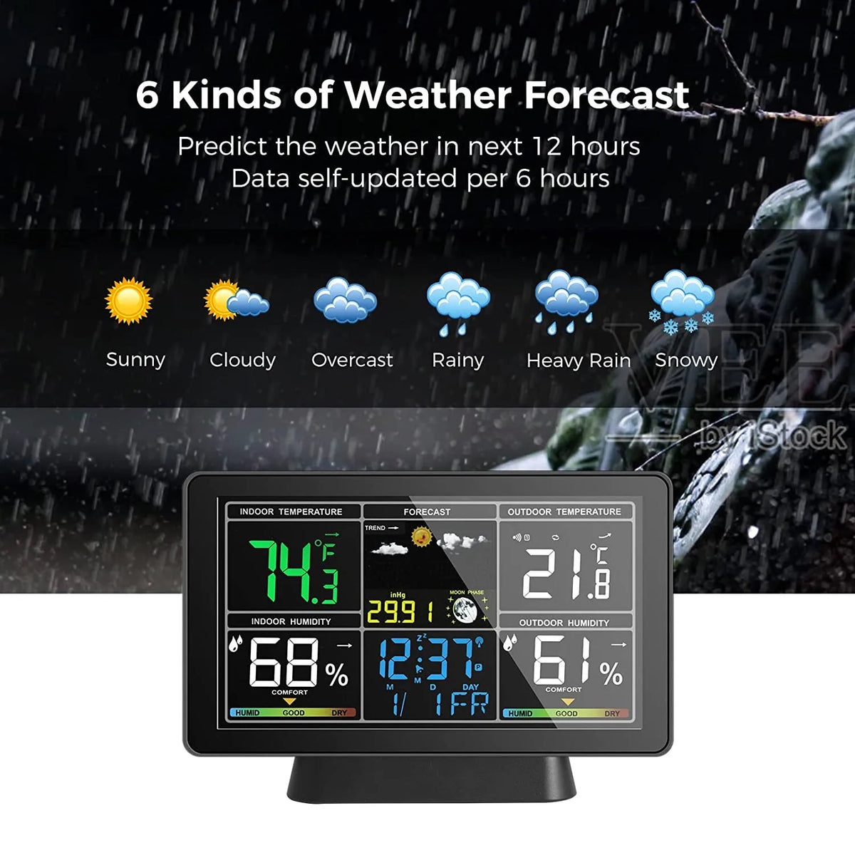 - Bodite korak pred napovedjo: WiFi povezljivost zagotavlja, da so lokalni čas, datum in vremenske napovedi ažurne za boljše načrtovanje.