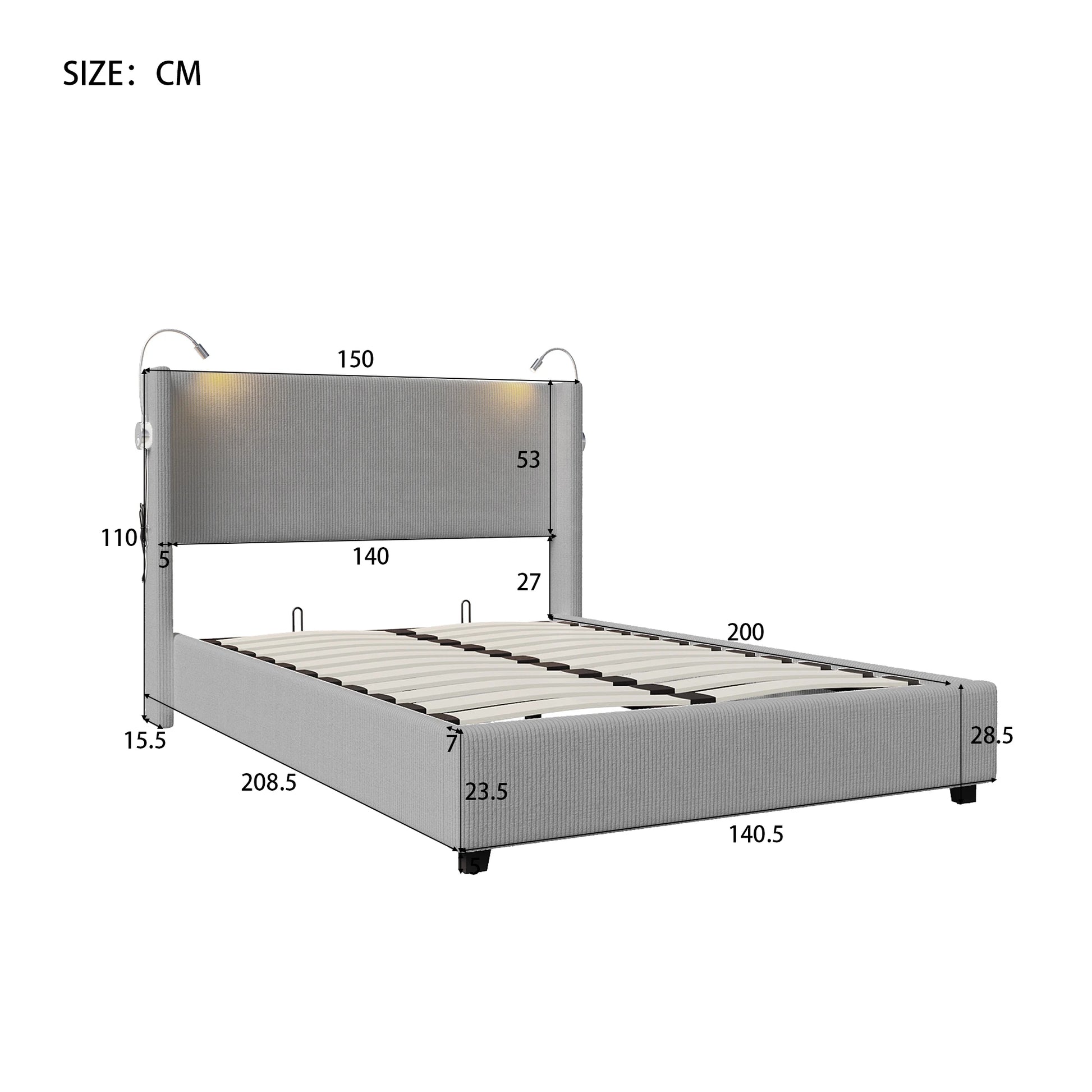 Urban Luxe Siva Postelja 140x200 Z Letvicami S Shranjevanjem