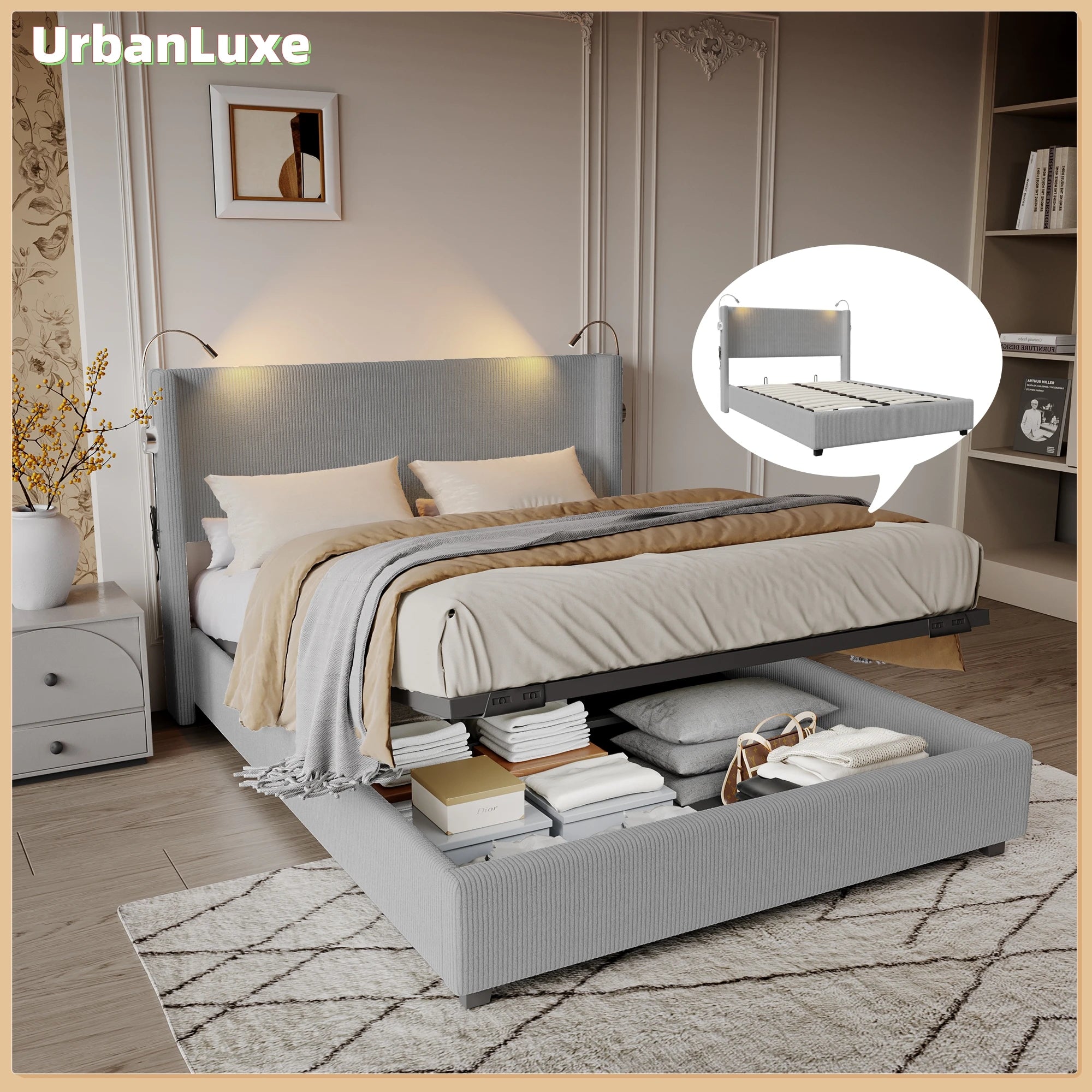 Odkrijte posteljni okvir Urban Luxe Gray 140x200 z letvami in shrambo — izpopolnjen spoj udobja, pametnega oblikovanja in dolgotrajne vzdržljivosti. Ovito v mehko sivo kordurojno blago z subtilno vertikalno črtasto teksturo, ta posteljni okvir prinaša mirno, sofisticirano vzdušje v vsako spalnico, hkrati pa se brez težav integrira v različne dekorativne sloge.