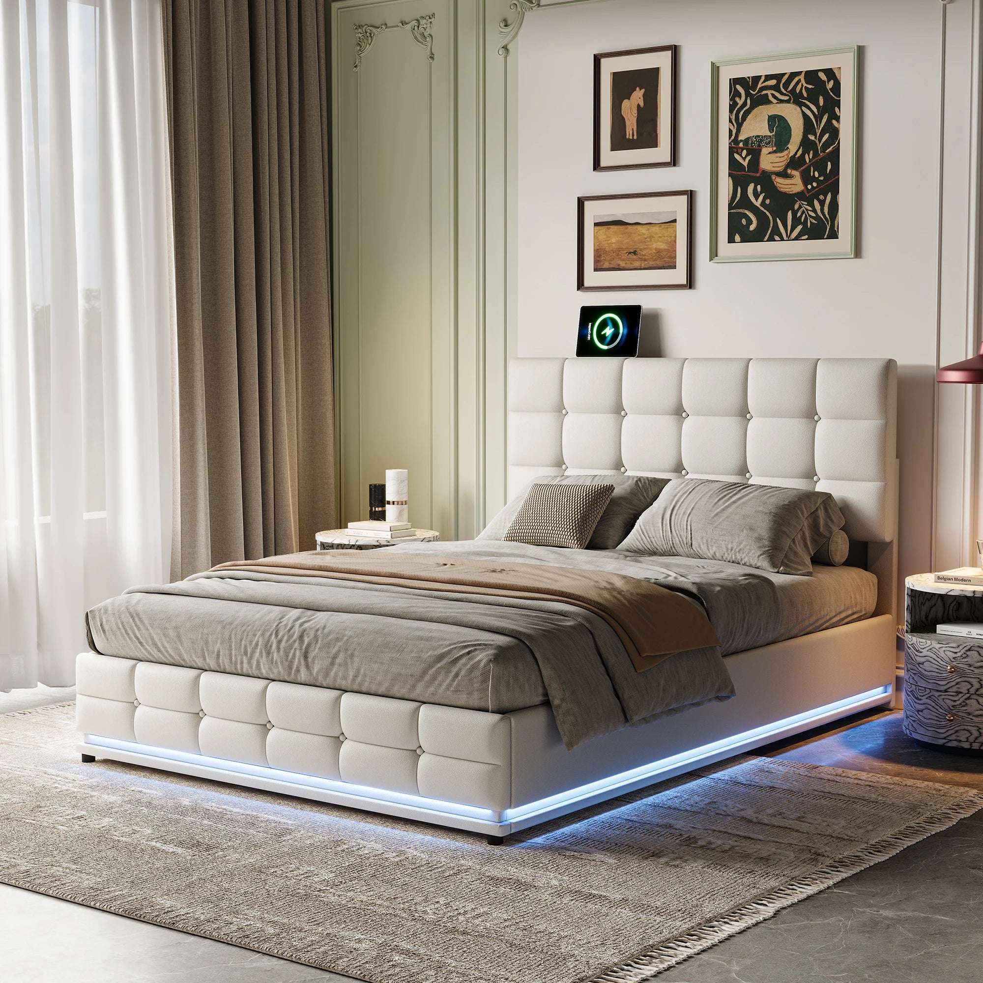 Urban Luxe Leather White 140x200 Posteljni okvir z letvami z LED