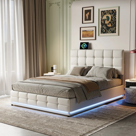 Izkušnja sodobne sofisticiranosti z Urban Luxe Leather White 140x200 posteljno ogrodje z LED. Ta moderna postelja združuje stilno umetno usnje s ambientno LED osvetlitvijo, da ustvari pomirjujoč, hotelu podoben umik v vsaki spalnici. LED luči okoli ogrodja ponujajo 4 samodejne načine spreminjanja barv in 16 barv, ki jih nadzoruje daljinski upravljalnik s 24 gumbi za prilagodljivo razpoloženjsko osvetlitev od mraka do zore.