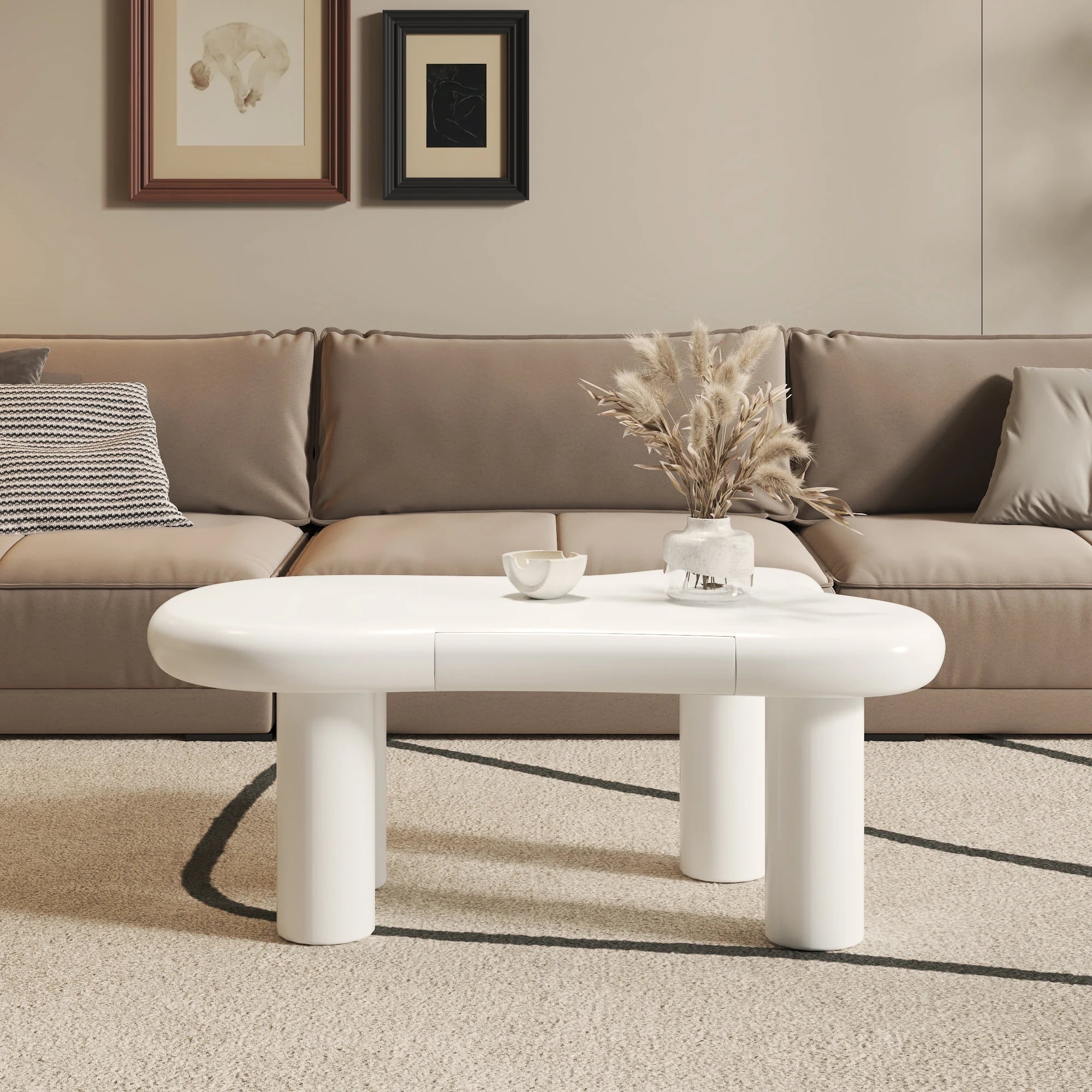 Belo oblake oblikovana MDF kavna miza z predalom 16 barv LED