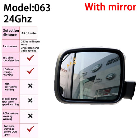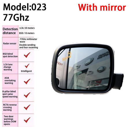 Land Rover Range Rover Sport L320 BSD Radar Warning with Blind Spot Detection je namenjen sistem za nadzor mrtvih kotov, zasnovan za povečanje varnosti med menjavami voznih pasov in vožnjo po avtocestah. Dva napredna mmwave radarja (24G/72G Hz), nameščena na zadnjem odbijaču, aktivno skenirata sosednje pasove, da zaznajo premikajoče se objekte v razponu od 3 do 10 metrov za vozilom. Ko potencialna nevarnost vstopi v opozorilno območje, sistem zagotovi jasna opozorila preko LED diod, zvočnih signalov in, odvisno od namestitve, vaših smernikov, da označi tveganje za menjavo pasu. Ta intuitivna povratna informacija vam pomaga sprejemati varnejše odločitve na prometnih cestah in med prehitevanjem.