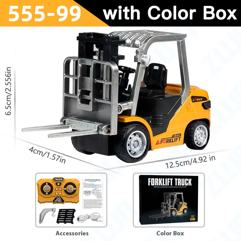 Spoznajte ZWN 1:64 Alloy RC viličarja — kompakten, trpežen viličar na daljinsko upravljanje, ki je popolne velikosti za igranje in razstavljanje na mizi. Zgrajen iz cinkove zlitine in robustnih ABS dodatkov, ta igrača v razmerju 1:64 ponuja realistično delovanje, impresivno kontrolo in trdno zmogljivost na mizah, policah in hobističnih postavitvah. Pripravljen za uporabo takoj iz škatle, ima 3.7V 200mAh Li‑ion baterijo, USB-C polnjenje in odzivno 2.4G daljinsko upravljanje za gladko in natančno vožnjo.