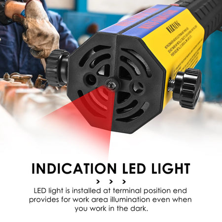Designad för säkerhet och enkelhet, detta kit har en LED-lampa på toppen för mörka arbetsutrymmen och ett halkfritt grepp för bekväm hantering. Den medföljande verktygslådan i aluminiumlegering håller alla komponenter organiserade och portabla, så att du kan ta med den till verkstad, garage eller arbetsplats. Med åtta spolar i olika storlekar och ett omfattande tillbehörsset har du mångsidigheten att hantera ett brett spektrum av fästelement och metaller—från bultar och muttrar till kugghjul och sensorer, och till och med polyetylendelar.