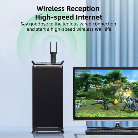 Upplev snabb, pålitlig trådlös anslutning med 1200Mbps USB 3.0 Dual Band WiFi-adapter för Windows-datorer. Denna kompakta externa adapter ansluts till en USB-port för att leverera dual-band WiFi på 2,4 GHz och 5 GHz, vilket hjälper dig att strömma, spela och arbeta online med mindre störningar. Dubbel högförstärkningsantennor ökar räckvidden och väggpenetrationen för en stabilare anslutning mellan rum. Designad för bred kompatibilitet, stöder den Windows XP till Windows 11 och erbjuder drivrutinsfri installation på stödda system, plus enkel hotspot-delning för att omvandla en trådad dator till en WiFi-hotspot för telefoner och surfplattor. USB 3.0-gränssnittet säkerställer snabb dataöverföring och bred kompatibilitet med moderna routrar.