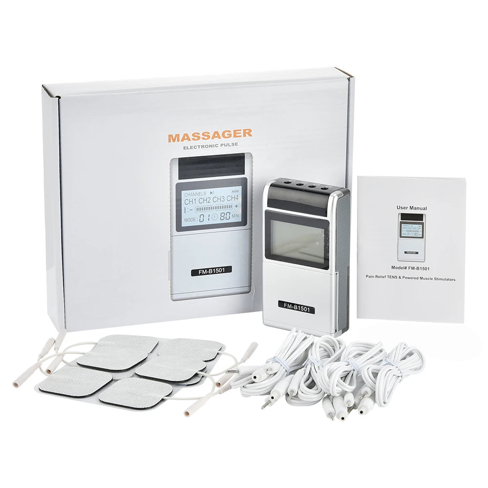 15 Modes EMS Elektrisk Muskelstimulator – Full Body Massager — en kompakt EMS/TENS fysioterapi pulsenhet designad för smärtlindring i hela kroppen, muskelkonditionering och avslappning. Elektronisk, lättanvänd, med 15 förinställda lägen för riktad terapi.