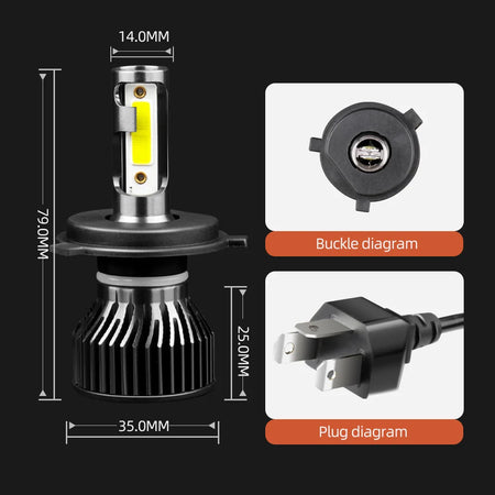 - Enkel plug-and-play-installation (H4/9003/HB2-sockel) med 360-graderskontakt för flexibel inriktning och snabb uppgradering.