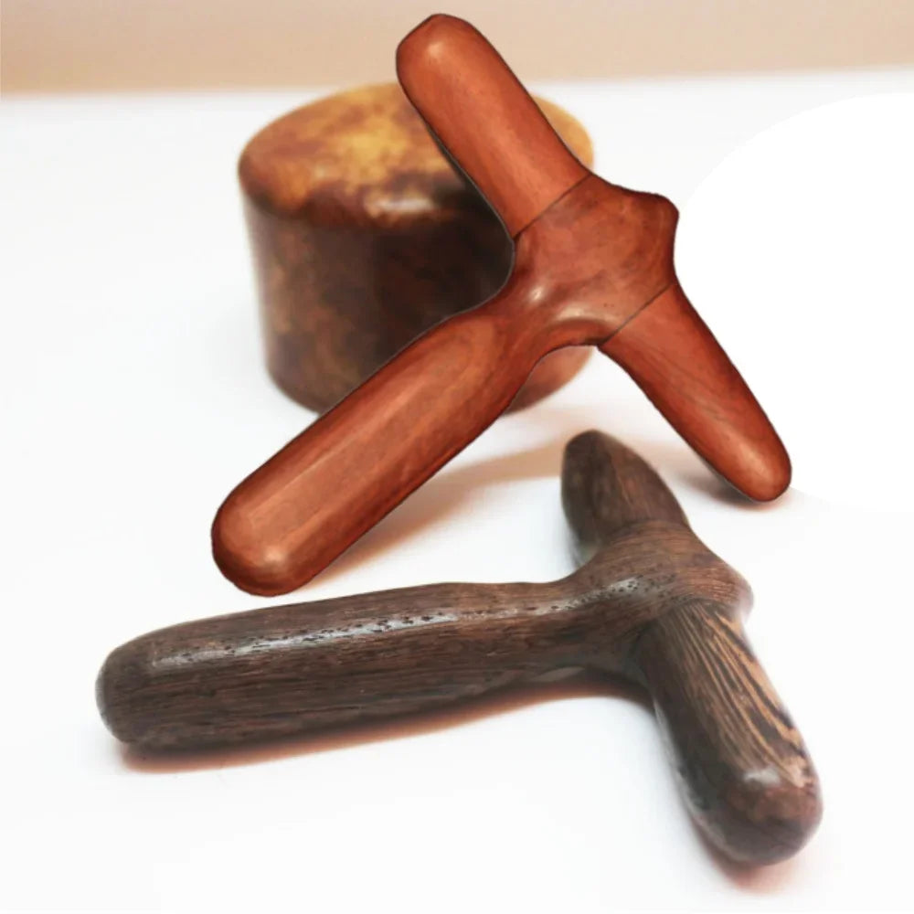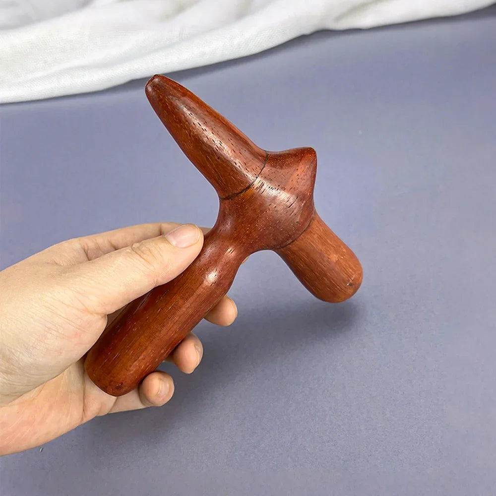 Tillverkad av högkvalitativt trä, har varje stycke ett unikt naturligt ådringsmönster, vilket gör det både till ett praktiskt verktyg och en touch av natur som du kan bära med dig. Lätt och hållbar glider den smidigt över huden för att leverera en mild, effektiv massage utan elektronik.