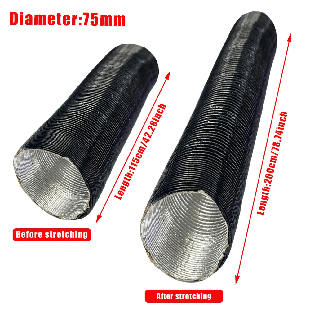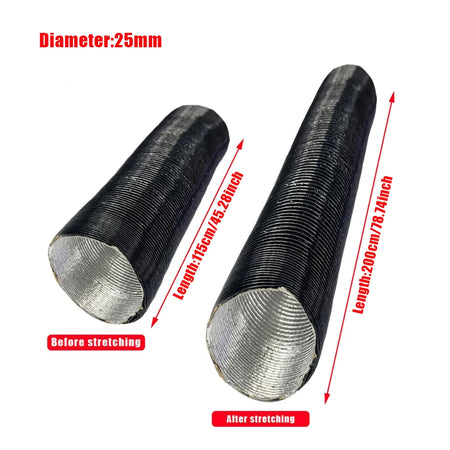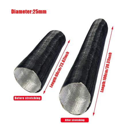 Designad för diesel luftvärmare i bilar, lastbilar, skåpbilar, båtar, tunga maskiner och jordbruksutrustning, levererar denna Aluminium Luftvärmar Rörledning pålitlig, flexibel rördragning för att passa din installation. Finns i flera diametrar (42 mm, 60 mm, 75 mm, 90 mm) för att matcha populära värmarvarumärken som Webasto, Dometic och Planer, kombinerar den hållbar konstruktion med enkel hantering. Det svarta aluminiumröret är lätt men robust, vilket hjälper till att kanalisera varm luft effektivt samtidigt som det motstår korrosion i krävande miljöer. Observera att produkten kommer att vara komprimerad för transport; storleken kommer att ändras efter mottagandet, så vänligen sträck till önskad längd. Den angivna längden är den sträckta längden, inte den packade längden. Sträck lätt och fullt för att uppnå den nödvändiga dimensionen. Om du har svårt att nå önskad längd, be om hjälp eller kontakta oss för assistans. En mätningstolerans på 0–1 cm kan förekomma på grund av manuell mätning.