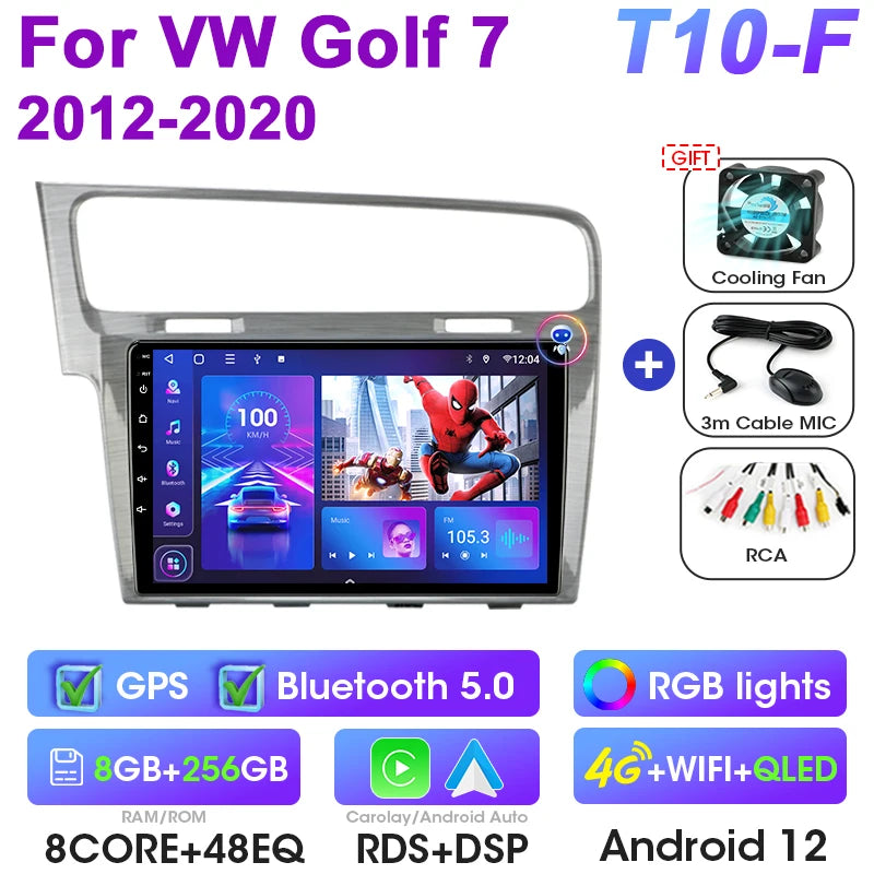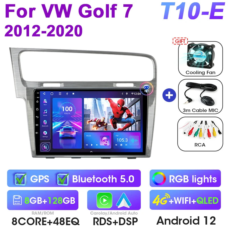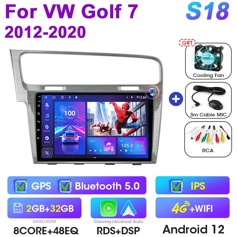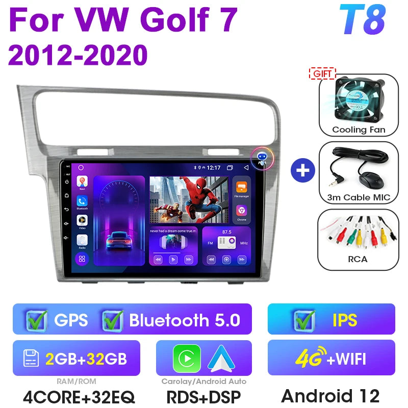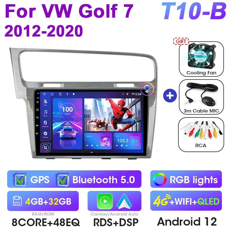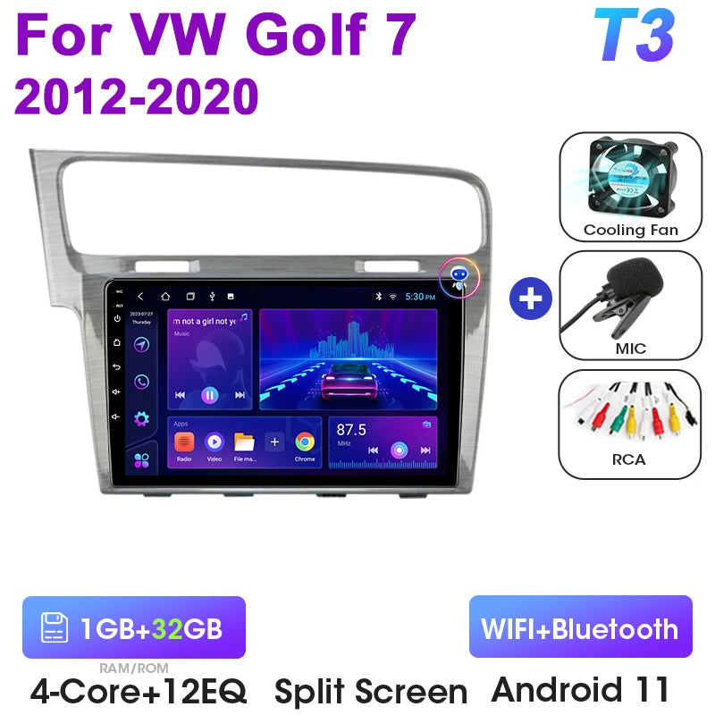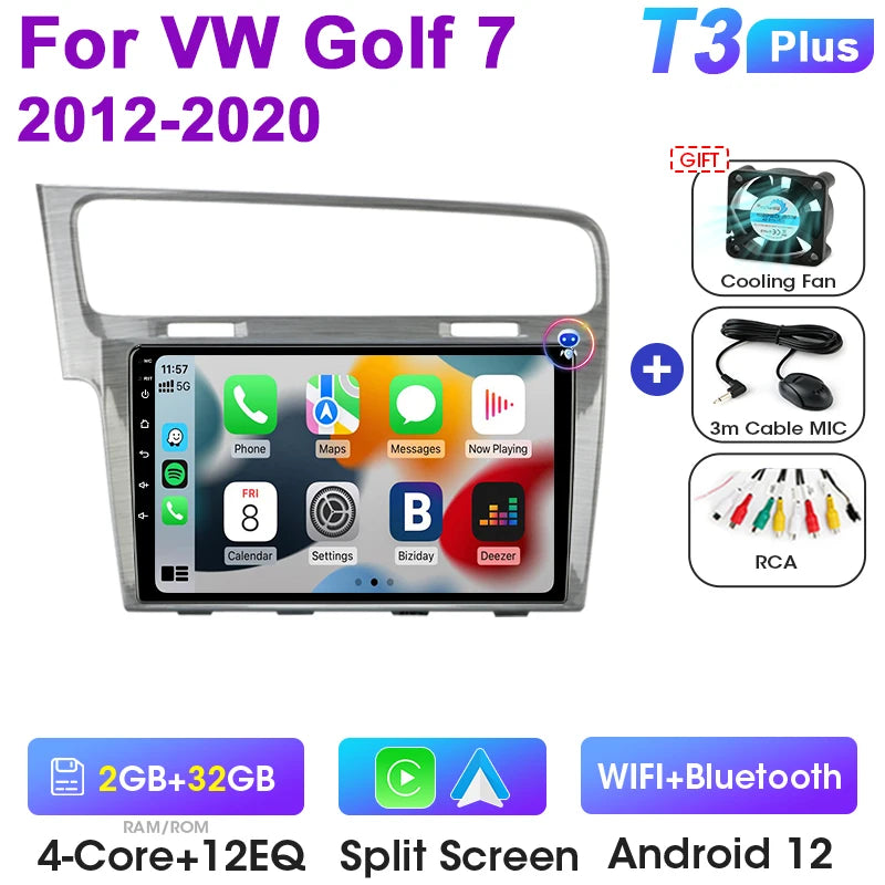 Uppgradera din VW med Android 12 Double Din bilstereo designad för Golf 7 MK7 GTI-modeller från 2011 till 2021. Denna 9-tums pekskärmsmultimediacenter ersätter fabriksradion med en modern Android-upplevelse, inbyggd GPS, DVD-uppspelning och sömlös smartphoneintegration via CarPlay och Android Auto. Med 4G-anslutning, WiFi och en octa-core processor får du snabba appar, navigation, musik och handsfree-samtal på vägen. Enheten stödjer rattkontroller och CAN-BUS för originalbilsfunktioner, vilket ger dig en smart, integrerad uppgradering utan att offra fabriksfunktioner.