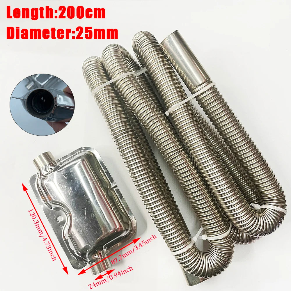 Uppgradera din diesel parkeringsvärmare med denna robusta avgaslösning som är designad för pålitlighet och tyst drift. Detta kit kombinerar ett hållbart 25 mm rostfritt stålrör (200 cm) med en kompakt 24 mm ljuddämpare (aluminiumlegering) för att leverera en säker avgasväg för ett brett utbud av Eberspacher och Propex värmarmodeller. Dess konstruktion i rostfritt stål erbjuder utmärkt motståndskraft mot värme och korrosion, vilket gör det till ett pålitligt val för långvarig användning i fordon och trånga utrymmen. Kompatibel med många Eberspacher Airtronic-modeller (D2, D4, D4S) och D1LC/D3LC/D5LC-varianter, samt kompakta versioner, är detta kit idealiskt för att ersätta slitna komponenter eller slutföra en ny installation med en enda, sammanhängande lösning.