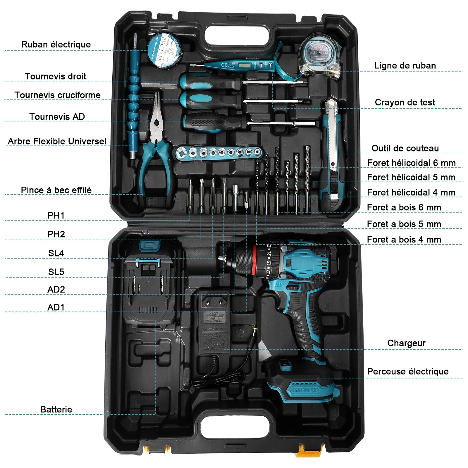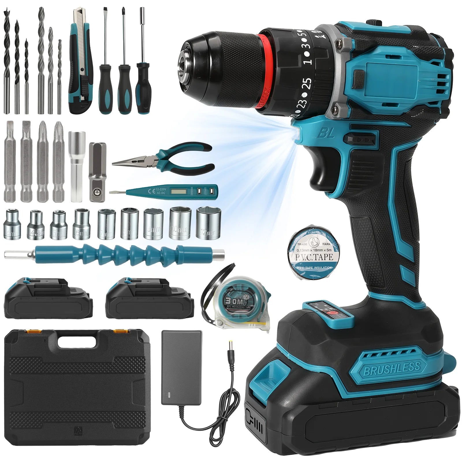 Borstlös 18V Sladdlös Borrskruvdragare 20 Plus 3 Vridmoment 2 Växlar