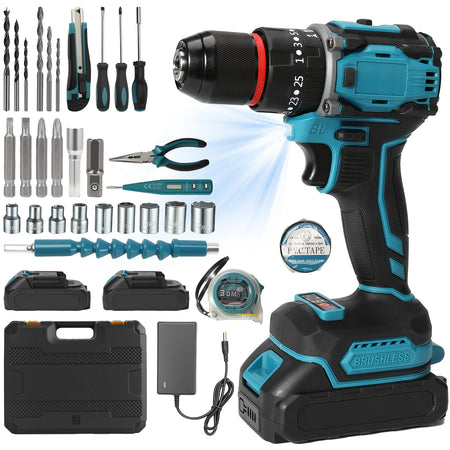 "Upptäck kraft, precision och mångsidighet med den Borstlösa 18V Sladdlösa Borrskruvdragaren från DWiusty. Byggd för krävande uppgifter och vardagsprojekt, kombinerar detta 3-i-1 verktyg en effektiv borstlös motor med genomtänkt design för att leverera pålitlig prestanda när du behöver det som mest. Dess höga vridmoment och mjuka variabla avtryckare hjälper dig att hantera trä-, metall- och skruvdragning med självförtroende, medan det 2-växlade, dubbla hastighetssystemet (1500 varv/min och 3000 varv/min) anpassar sig till lätta pilot hål eller snabb skruvdragning—så att du alltid har kontroll."