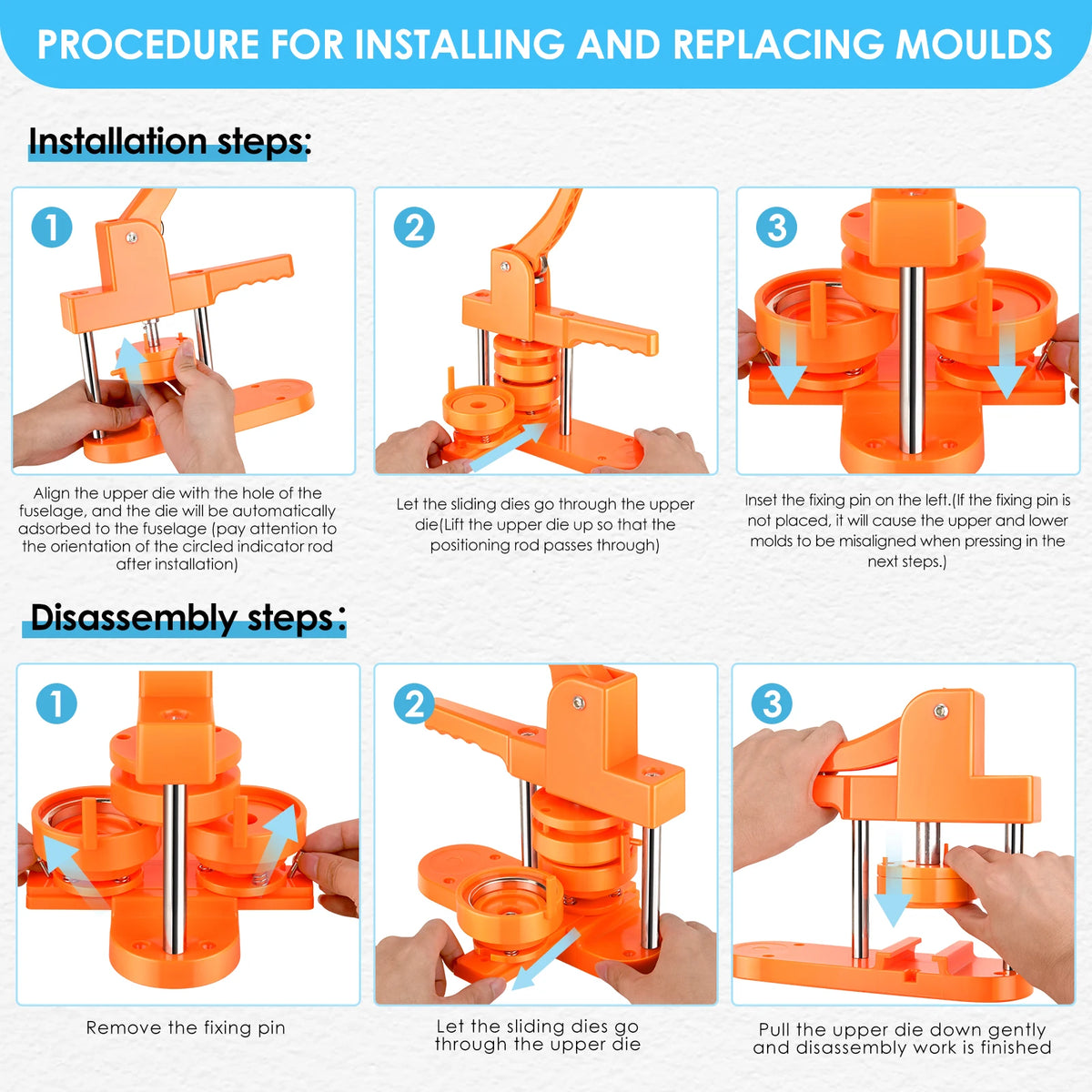 - Observera: Efter mottagandet av märkestillverkaren krävs enkel montering och du kan börja göra knappar omedelbart utan att montera komplicerade delar.