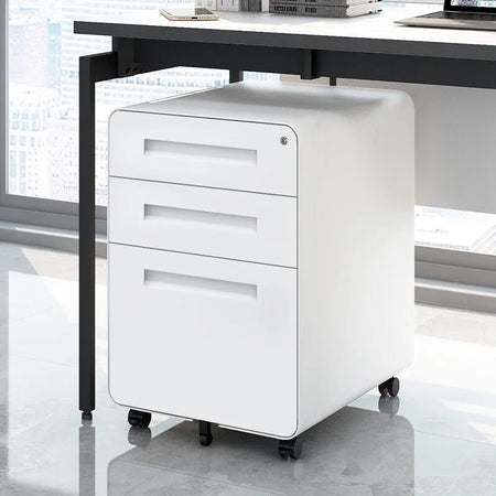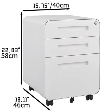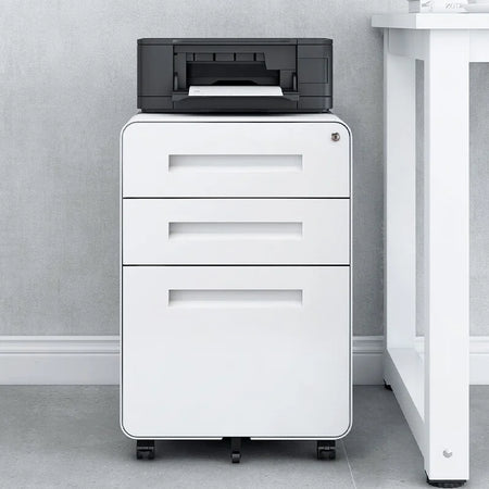Upptäck organiserad, säker och platsbesparande förvaring med Jugacool låsbara 3-låders mobila arkivskåp. Designat för att stå prydligt under ditt skrivbord, ger detta vita, pulverlackerade stålkåp säker dokumentförvaring och praktisk kontorsflexibilitet till varje arbetsplats. Ett lås säkrar alla tre lådorna, och du får två nycklar för extra sinnesro. Det levereras helt monterat förutom hjulen, så du kan snabbt ställa in det och börja organisera direkt.