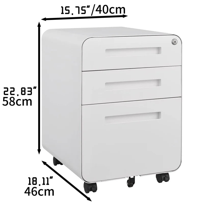 Låsbart 3-lådes mobilt arkivskåp under skrivbordet kontor