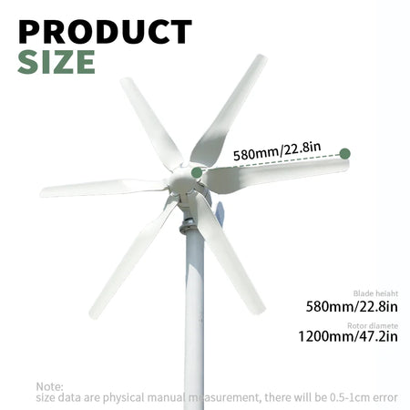 - Sex-bladig rotor erbjuder smidigare drift och bättre prestanda vid låga vindar; säkerställ regelbundet underhåll av rotor och vindkraftverk för lång livslängd.