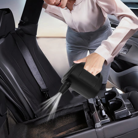 Dess 350W-motor snurrar upp till 33 000 varv per minut och producerar vindhastigheter på upp till 35 m/s (114,83 ft/s) för att snabbt lossa envis damm. Den kompakta, ergonomiska designen säkerställer bekväm hantering och enkel användning även under längre rengöringspass. Med en låg ljudnivå på 46–70 dB kan du städa utan att störa andra, medan den 3 m långa EU-standardiserade strömkabeln ger flexibel räckvidd. Fyra munstycken ingår för att anpassa luftflödet för trånga utrymmen, ventiler, tangentbord, bilinteriörer med mera. Enhetens kompakta mått (ungefär 7,68 x 7,28 tum) gör förvaring enkel, vare sig hemma, på kontoret eller i bilen.