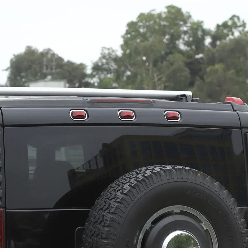Uppgradera din Hummer H2 med en slank ram i rostfritt stål i silver för bakluckans ljus, designad för modeller 2003-2009. Denna dekorativa ram ger en förfinad, modern touch till bilens bakdel samtidigt som den skyddar området mot repor och slitage. Tillverkad av högkvalitativt rostfritt stål och med en exklusiv silverton, kombinerar den hållbarhet med iögonfallande stil. Ramen är ISO 9001-certifierad, vilket garanterar jämn kvalitet från en välrenommerad fabrik som exporterar globalt. Den installeras snabbt med dubbelhäftande biltejp på baksidan för ett rent, fabriksnytt utseende.