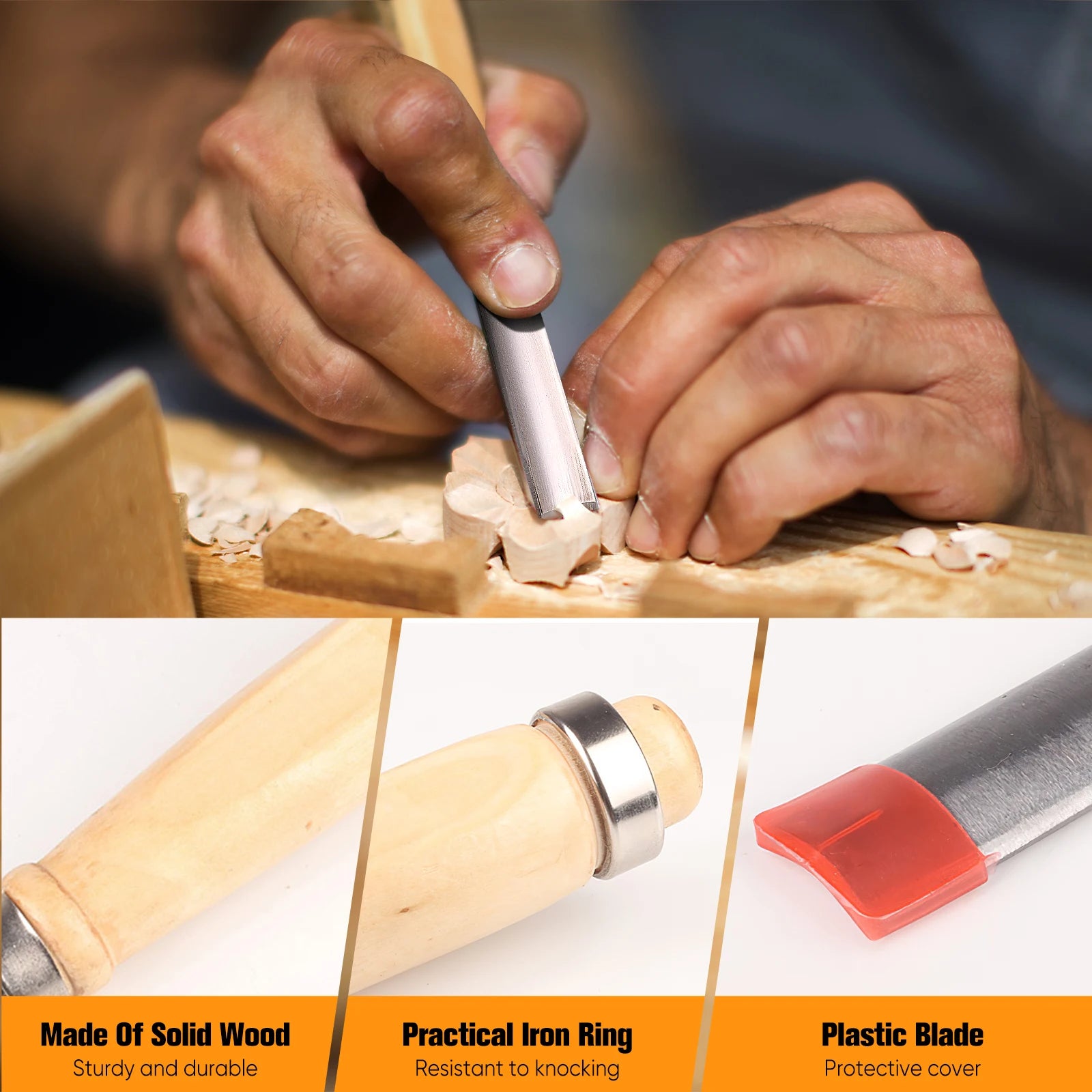 - Ergonomiska trähandtag minskar handtrötthet och förbättrar precisionen, vilket gör långa snidningspass bekvämare.