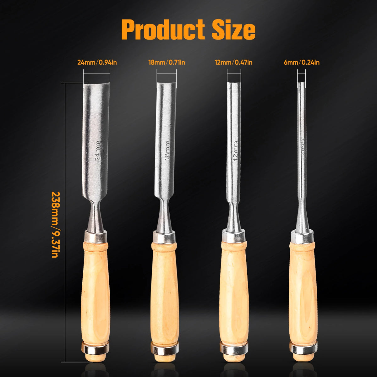 4-delars träbearbetningsmejselset för nybörjare 6mm 12mm 18mm 24mm