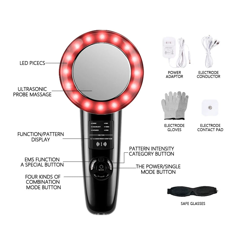 6 I 1 EMS Ultraljud Kavitation Kroppsmassagerare Ansikte Infraröd