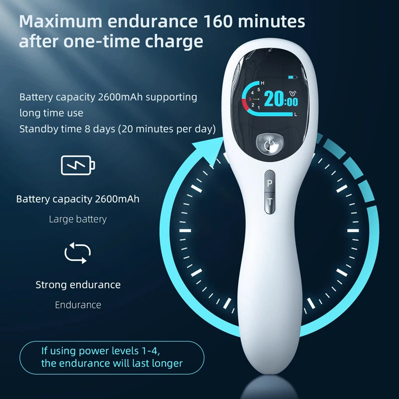 - Dubbla Våglängder: Kombinerar 650nm och 808nm våglängder för ökad penetration och effektivitet i smärtlindring.