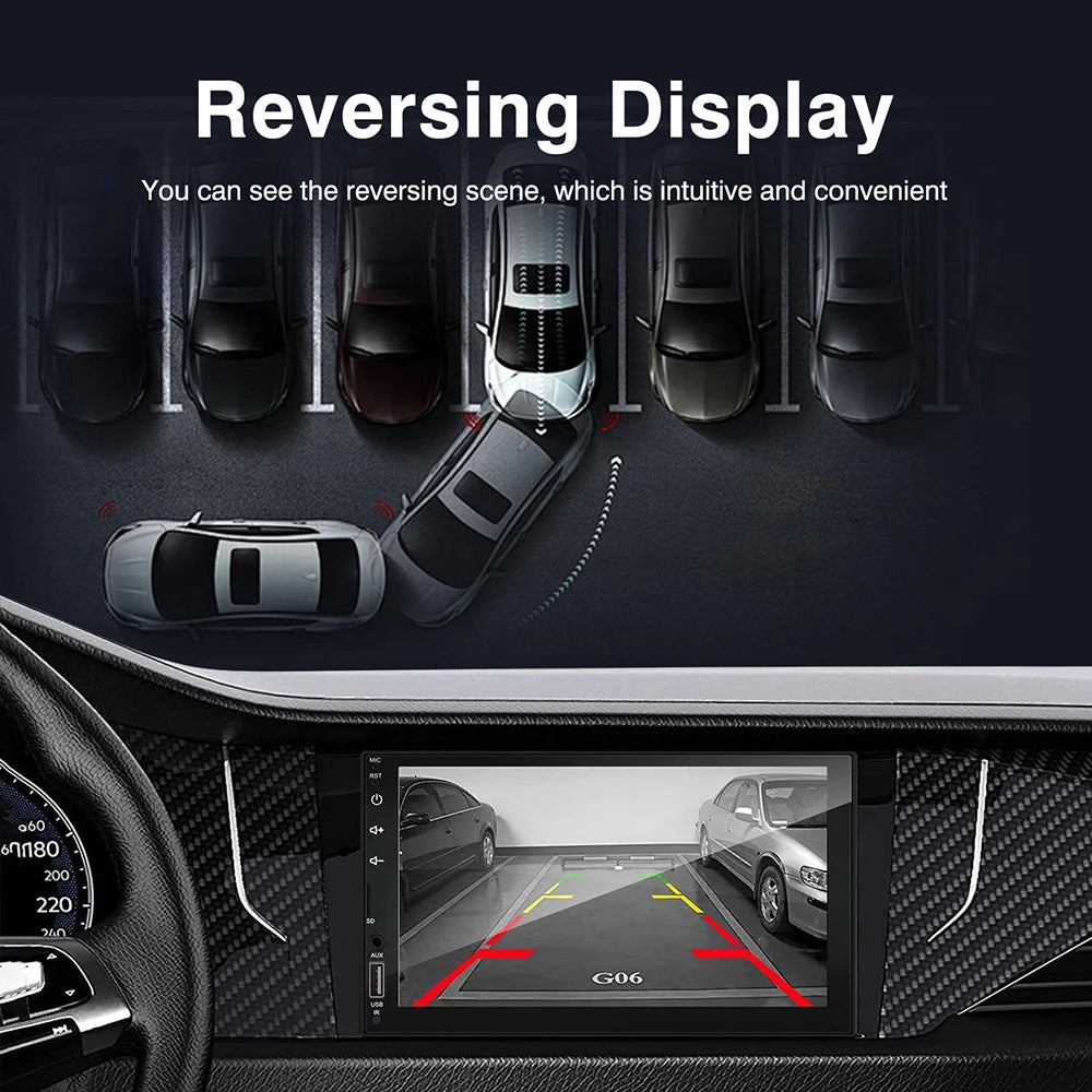 Den 7-tums skärmen erbjuder tydlig navigering, säkrare handsfree-samtal och sömlös åtkomst till dina favoritappar och media. Använd din telefons original USB-kabel för att synkronisera med den inbyggda skärmen, så att din navigering, musik och appar visas direkt i bilens infotainmentsystem. Inbyggd Bluetooth stöder handsfree-samtal och BT musikuppspelning, medan den inbyggda FM-radion (18 förinställningar) säkerställer att du aldrig missar dina föredragna stationer på språng. För flexibel lyssning kan du också spela musik eller videor från ett USB-minne, TF-kort eller via AUX-ingång, plus njuta av bekväm kontroll med stöd för rattkontroll och en backdisplay för säkrare parkeringsmanövrar. De 6 förinställda EQ-alternativen (Jazz/Classic/Rock/Pop/Flat/User) låter dig anpassa ljudet för att matcha bilens akustik.