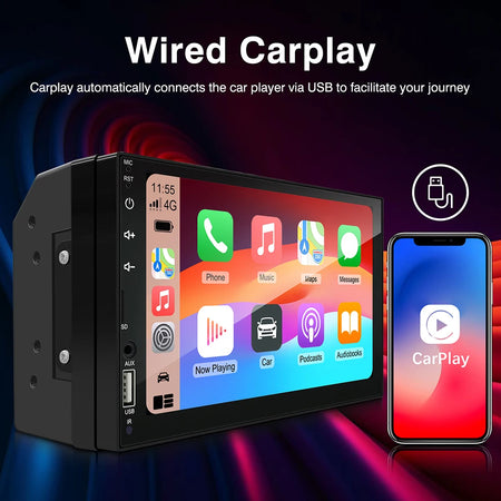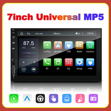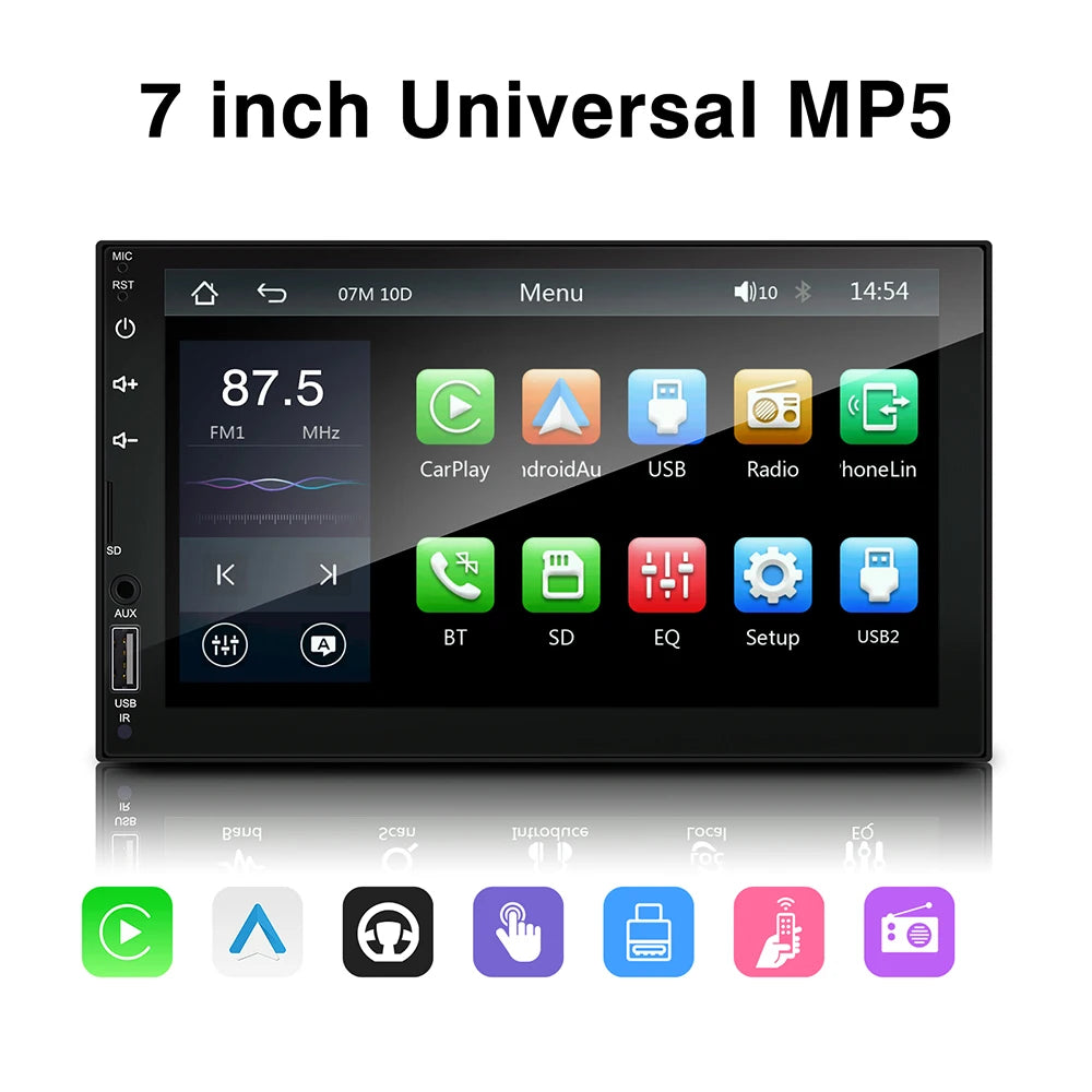 7-tums universell 2 Din bilstereo med CarPlay Android Auto, HD pekskärm