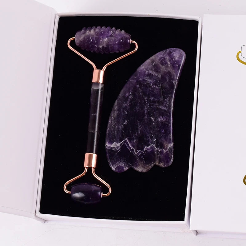 Ametist Sågtand Ansiktsrulle Naturlig Sten Kristall Massage