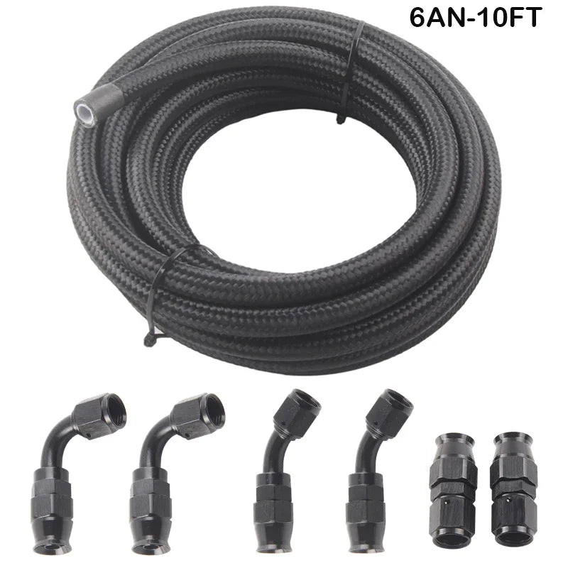 AN6/AN8/AN10 E85 Bränsleledningssats Nylon-Rostfritt Flätad PTFE, 3m/10ft