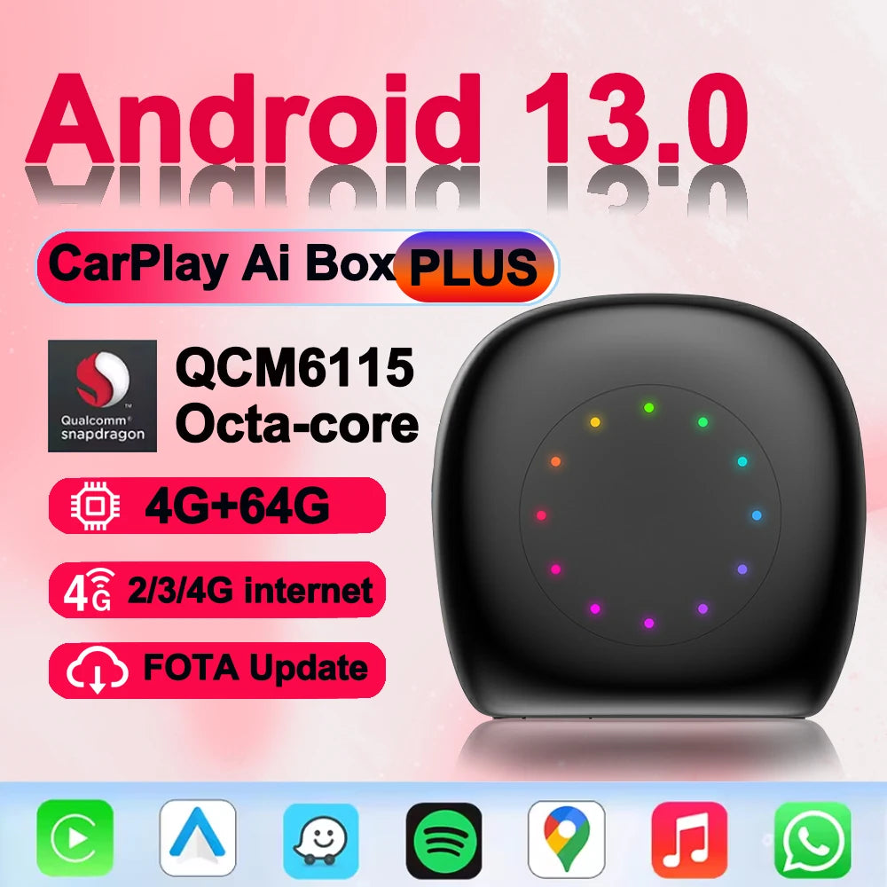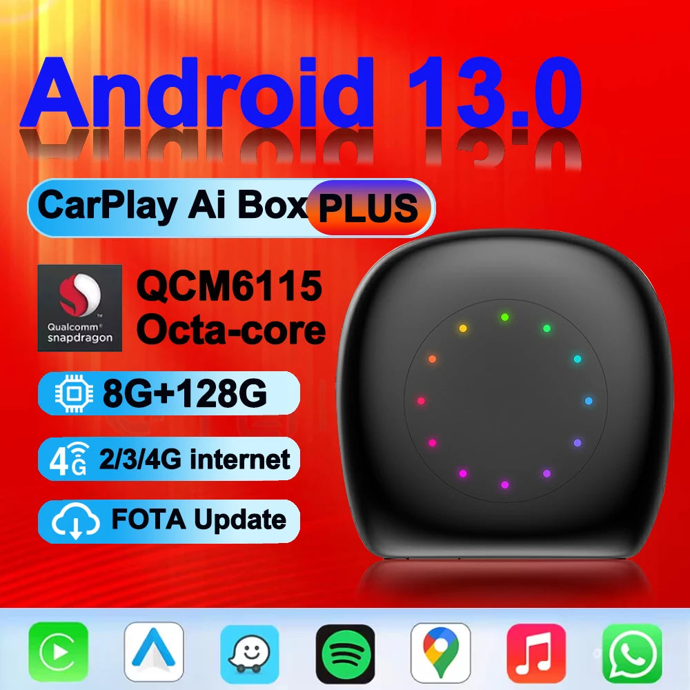 Uppgradera din trådade CarPlay-upplevelse med Android 13 CarPlay AI Box LED USB-adapter, tillgänglig i 64G eller 128G. Denna smarta modul glider in i din befintliga trådade CarPlay-installation och levererar en fullständig Android 13-miljö, tillgång till Google Play och AI-drivna funktioner som gör varje resa till en ansluten, underhållande och säkrare upplevelse. Designad specifikt för bilar som redan har trådad CarPlay, förbättrar den din infotainment utan att ersätta ditt fabriksystem.