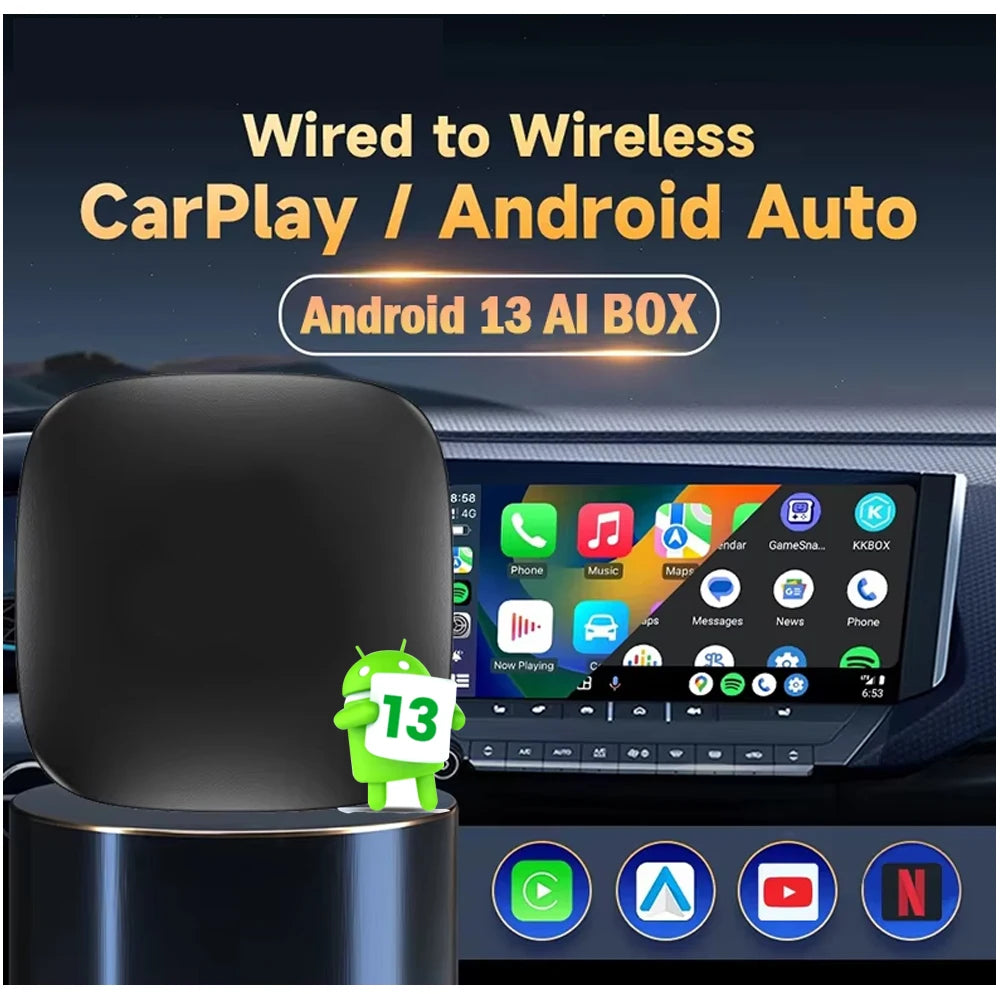 Android 13 CarPlay AI-låda för trådlös Android Auto, Netflix och YouTube