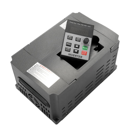 Designad för universella enfasapplikationer, anpassar sig AT1-2200S till motorer upp till 2,2 kW. Den inkluderar ett inbyggt filter och PWM-reglering för jämn utgång. Den kompakta kroppen (195 × 130 × 110 mm) och vikten på 1 137 g gör den lätt att installera i kontrollpaneler eller på maskinramar. Drivkortet är vattentåligt, fukttåligt och elektrostatisk skyddad, vilket ger extra skydd i utmanande miljöer. Den intuitiva knappsatsen med DISP, PROG, RUN, STOP/RESET och en hastighetsjusteringsknapp gör installationen snabb och enkel, även för förstgångsanvändare.
