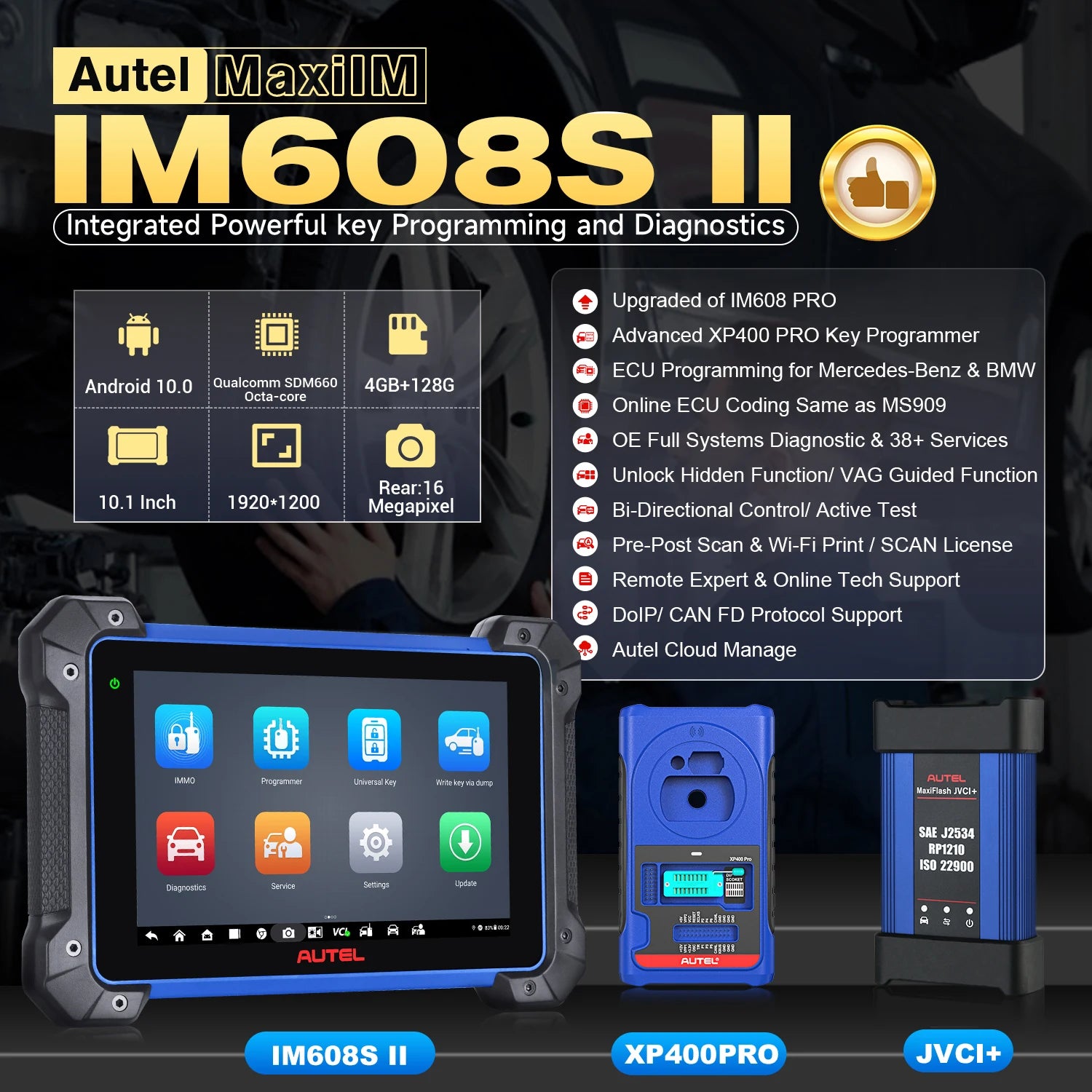 Autel MaxiIM IM608S II – XP400 PRO Inkluderad, J2534 ECU — Avancerad diagnostik- och nyckelprogrammeringstablett som kombinerar en 10,1-tums kapacitiv pekskärm, Bluetooth-anslutning och XP400 PRO-adapter för snabb ECU-åtkomst och J2534 passthrough.