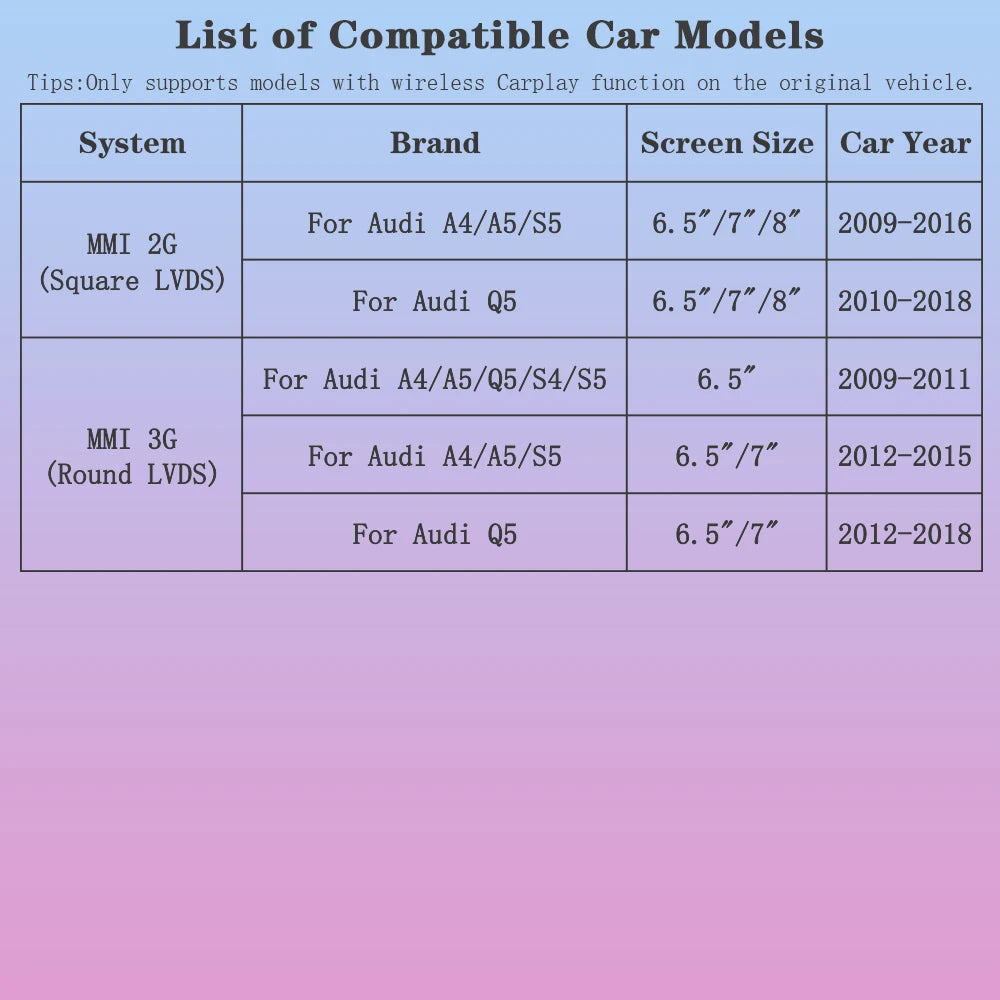 - Autotop Android Auto Trådlös CarPlay Adapter för Audi Q5
