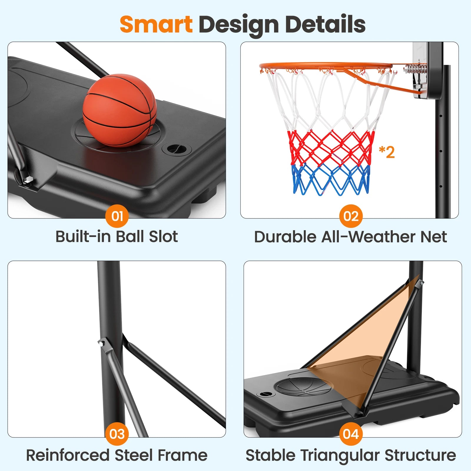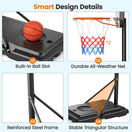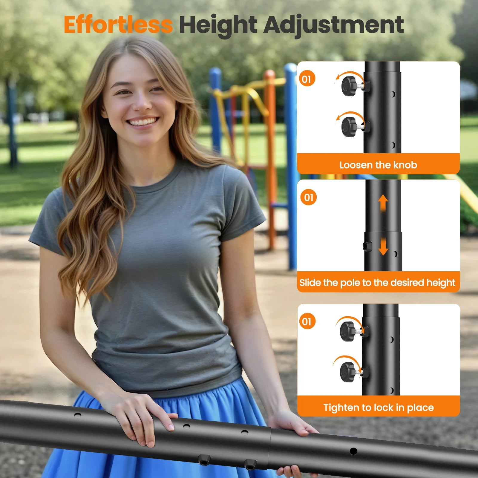 Jugacool Portabel Justerbar Basketkorg med Hjul ger spelklar underhållning till din bakgård, uppfart eller gymgolv. Byggd för hållbarhet och mångsidighet, växer denna korg med dig – från unga nybörjare till vuxna – tack vare dess snabba, verktygsfria höjdjusteringar och lättflyttade design. Välj 2-stolpsuppsättning för 135–185 cm total höjd eller 3-stolpsuppsättning för 230–305 cm, vilket säkerställer att korgen passar varje spelares behov.