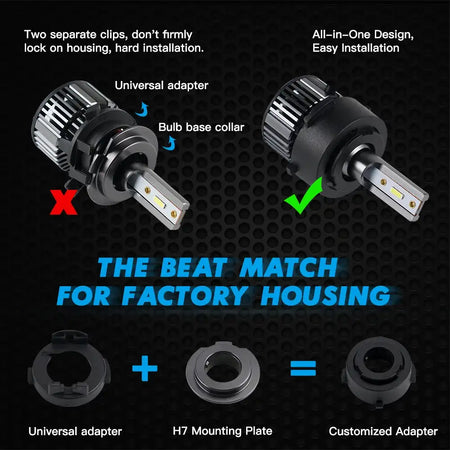 - Enkel plug-and-play-installation med en anpassad H7-sockel—ingen extra adapter krävs.